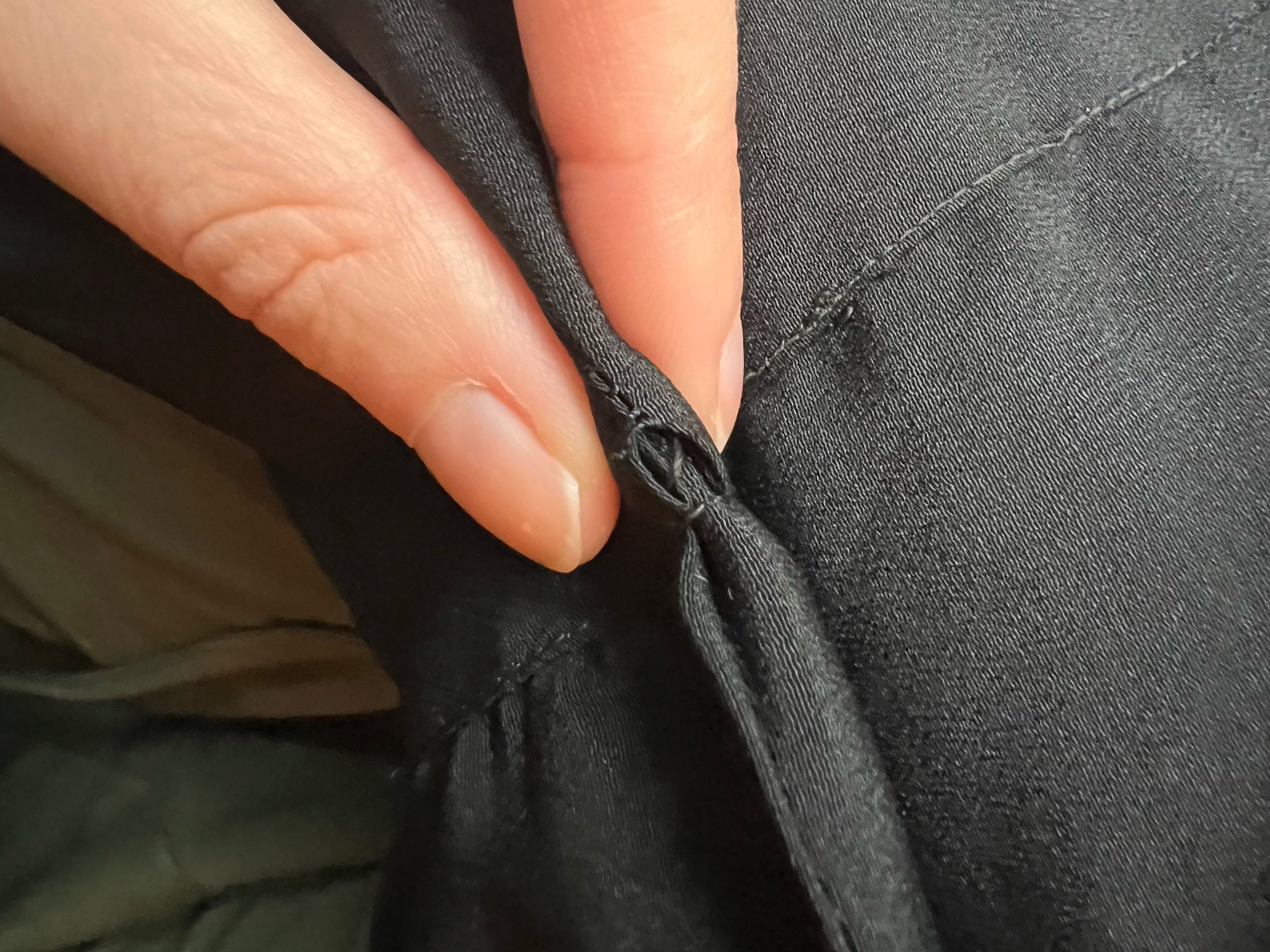 Hips: about 44 inches max (though this is somewhat relative as there is no closure here)
