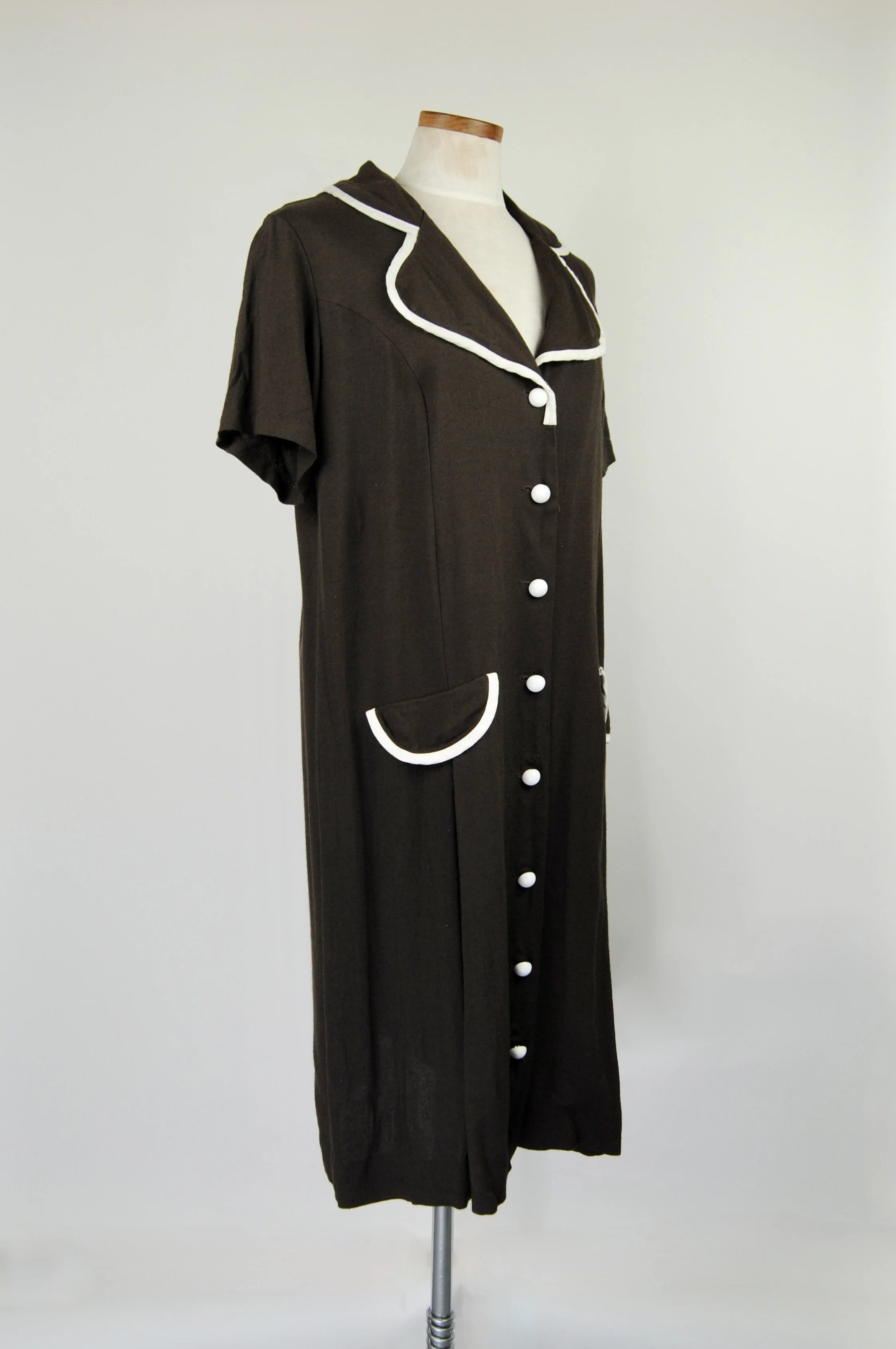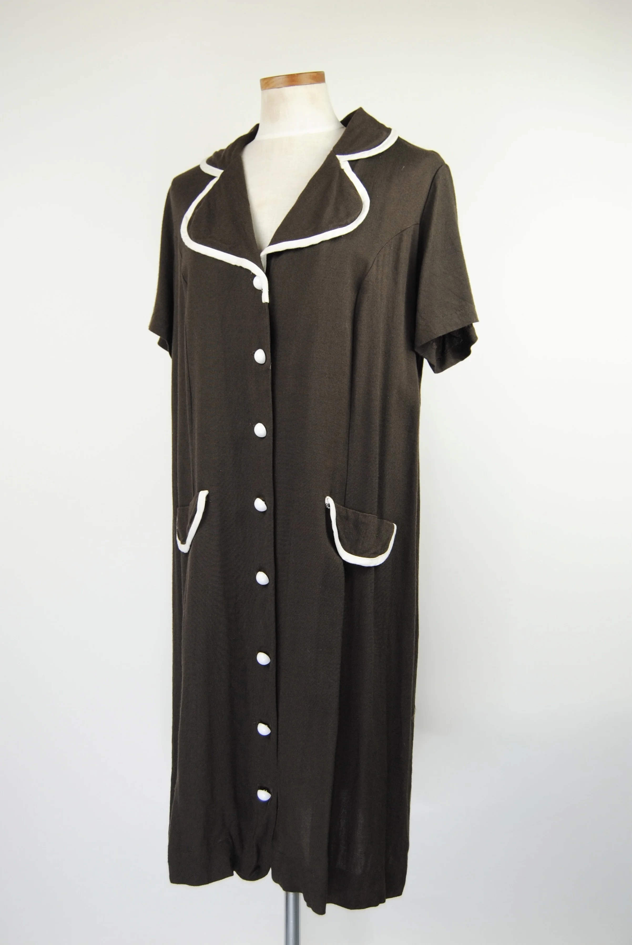 1940s 1950s Vintage Dark Brown Fabric Clutch or Pocket Book Purse with Mirror