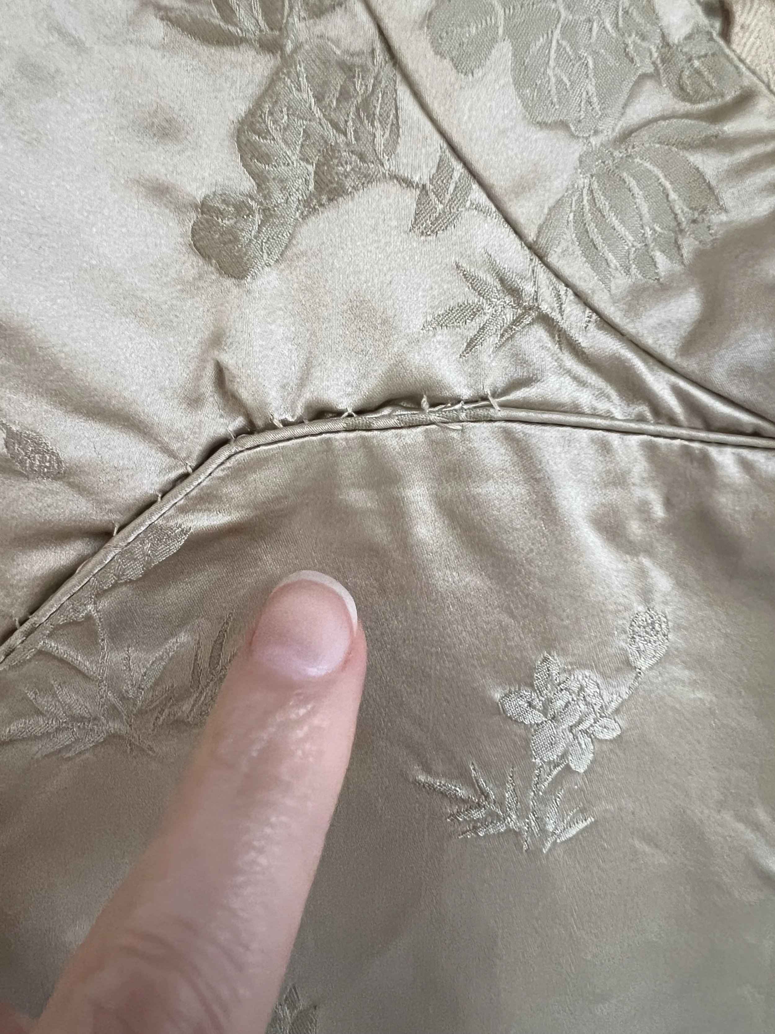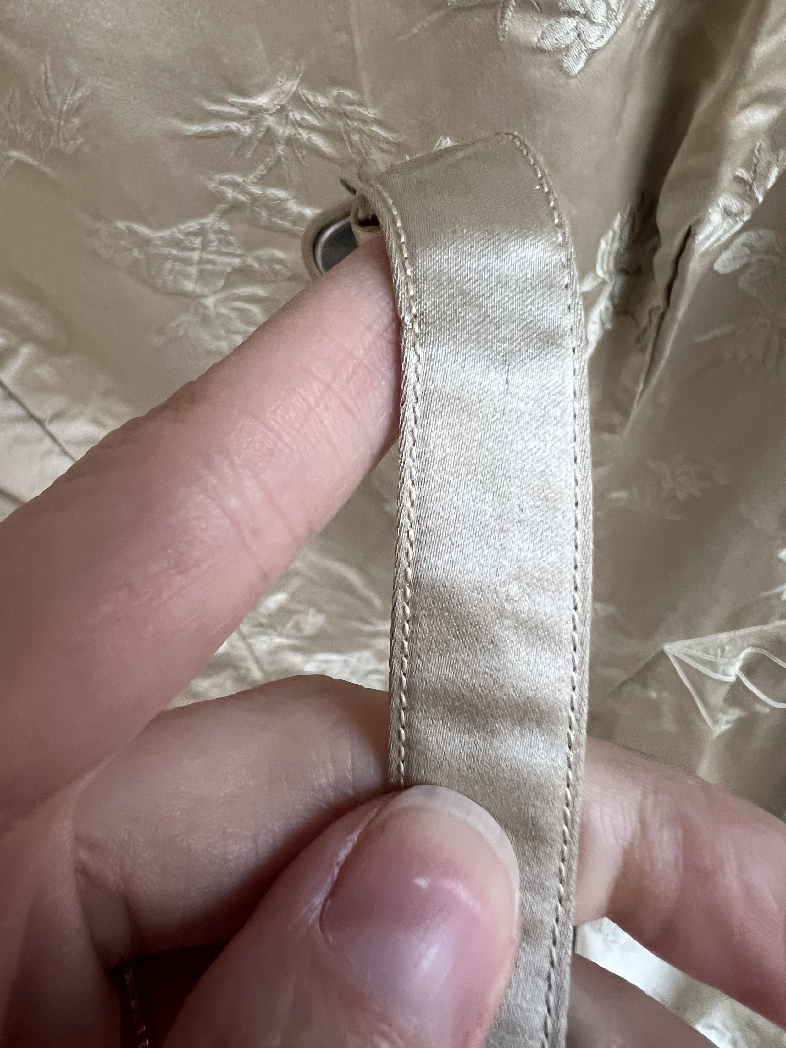Good Vintage Condition - Some overall wear to the gloves. Obviously given they are a natural material there is slight variation with the leather grain direction and color - I would not say this is discolored, just natural variation - see photos. Additionally there is some very small marks to the pieces as well as creases because of how they were stored. There is also some very small pin holes at the edge that is indicative of when they were pined together when originally sold.