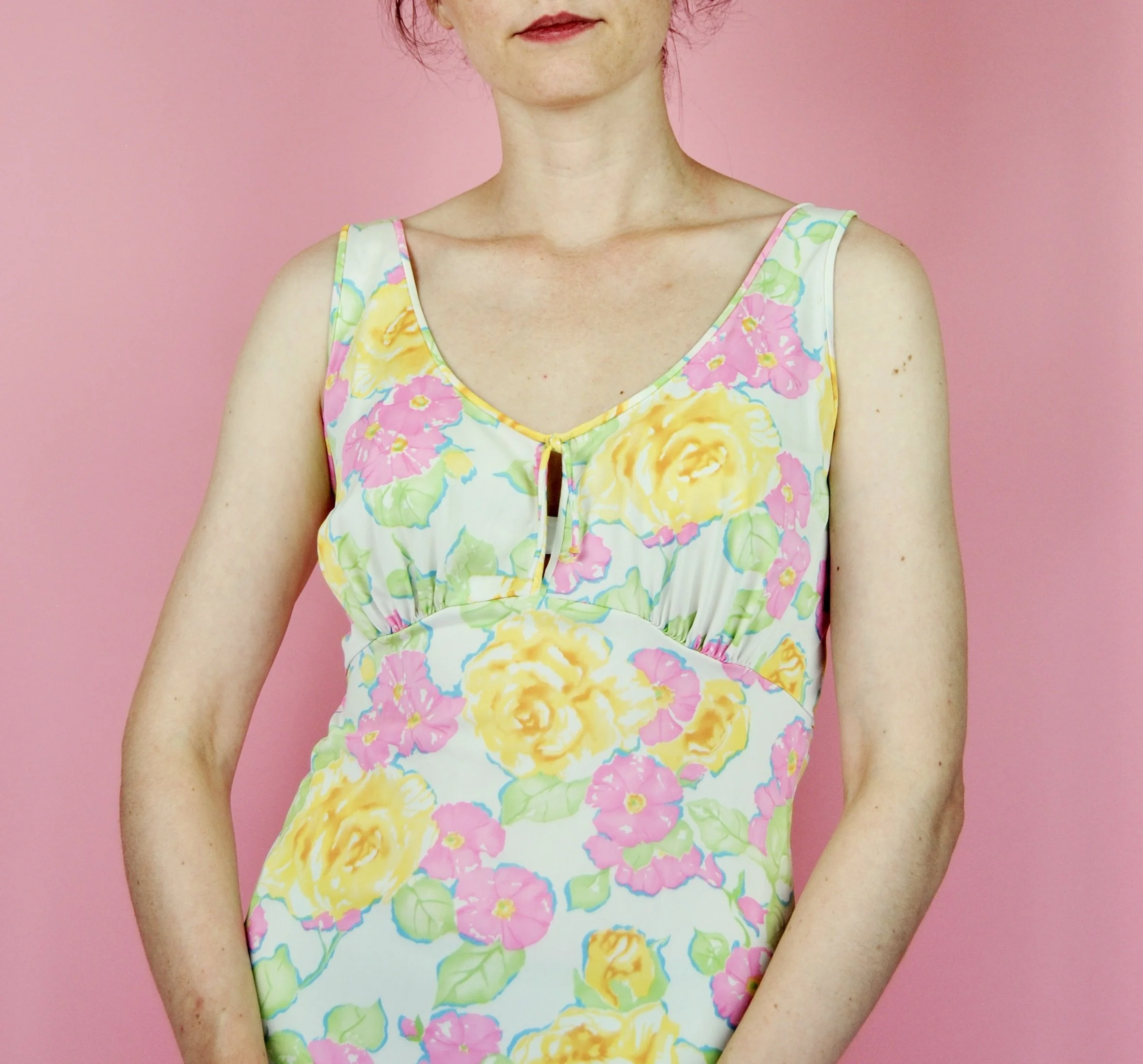 Bust: about 37 inches (somewhat accommodating because of the gathering)