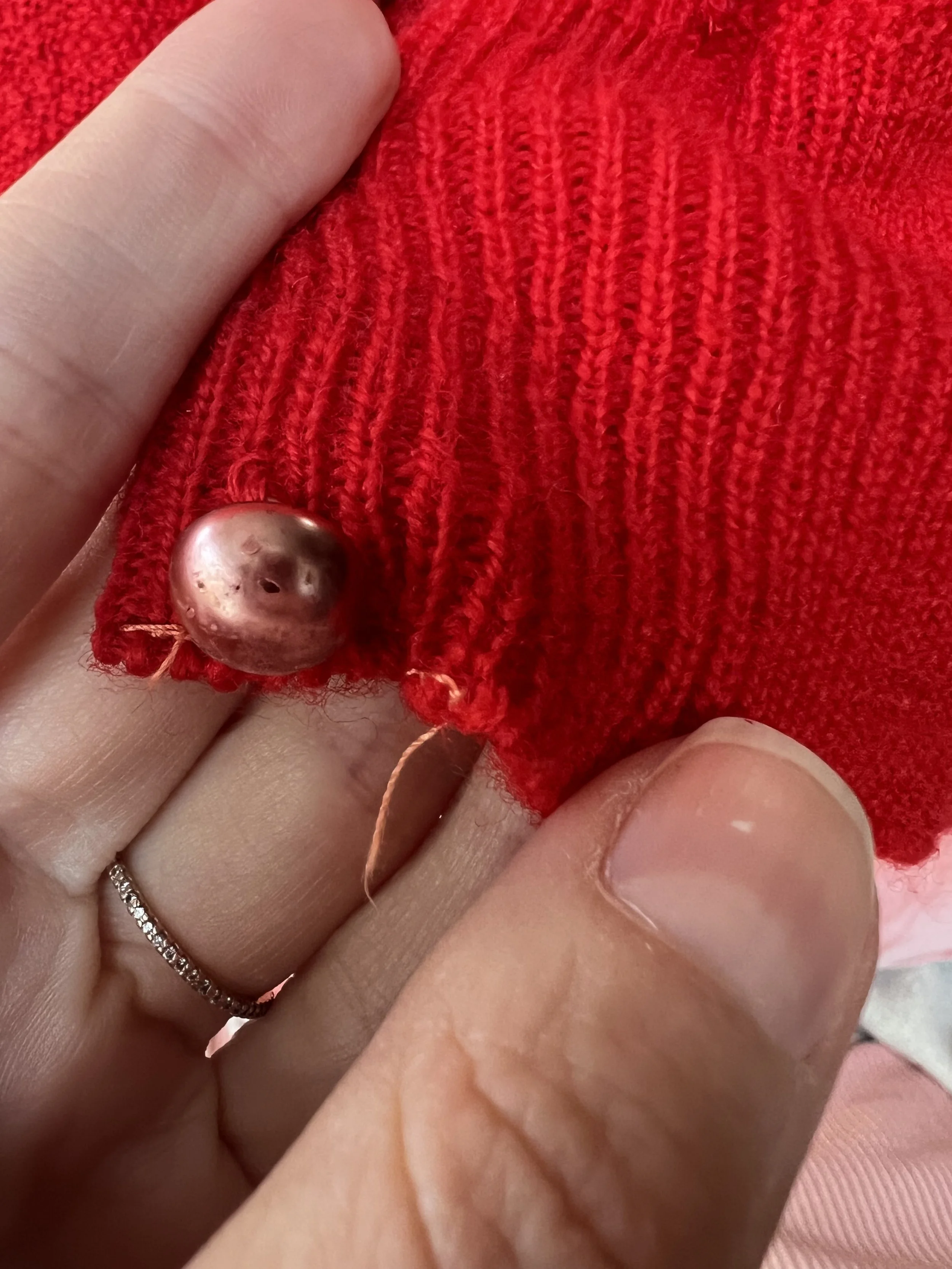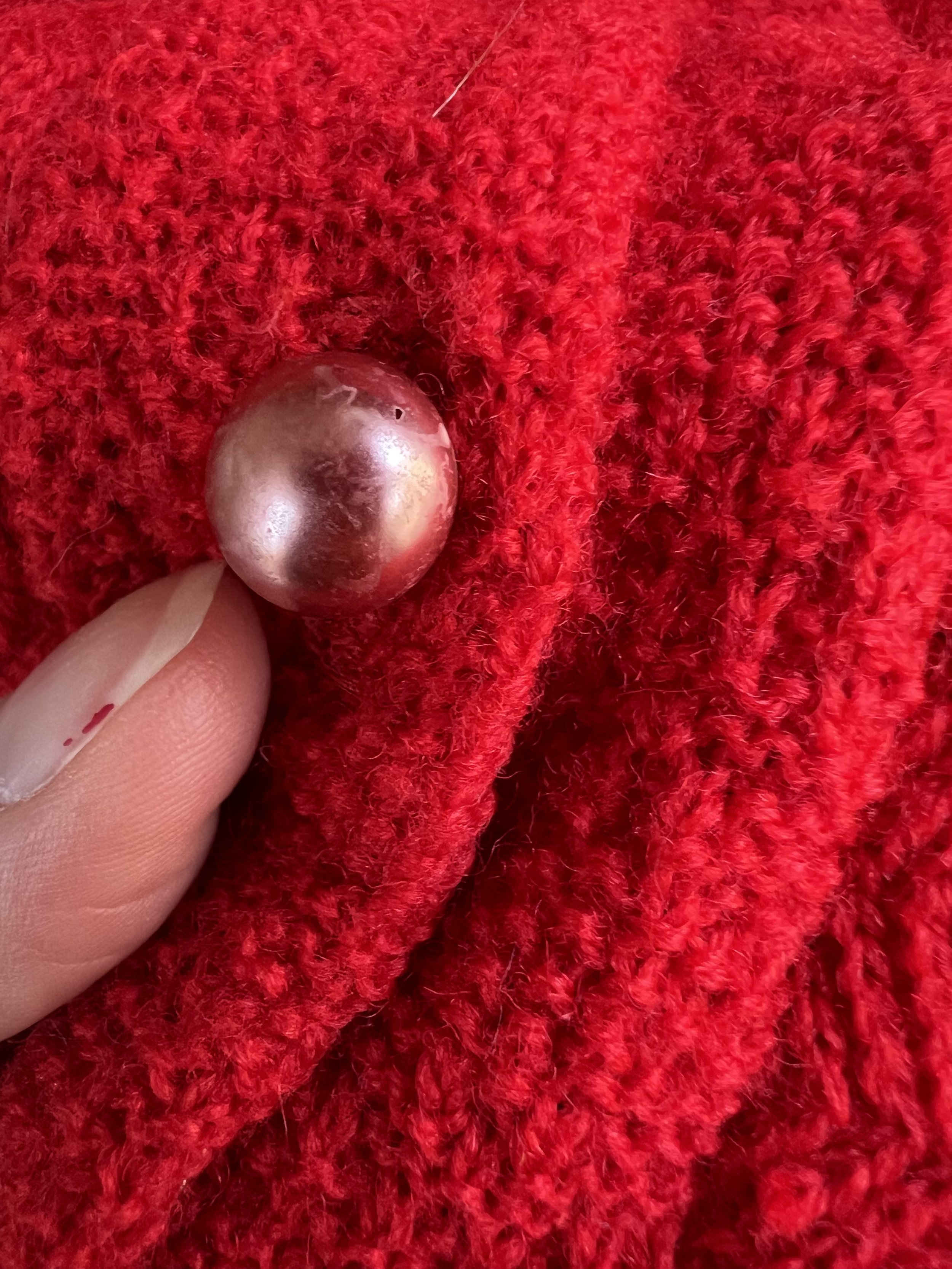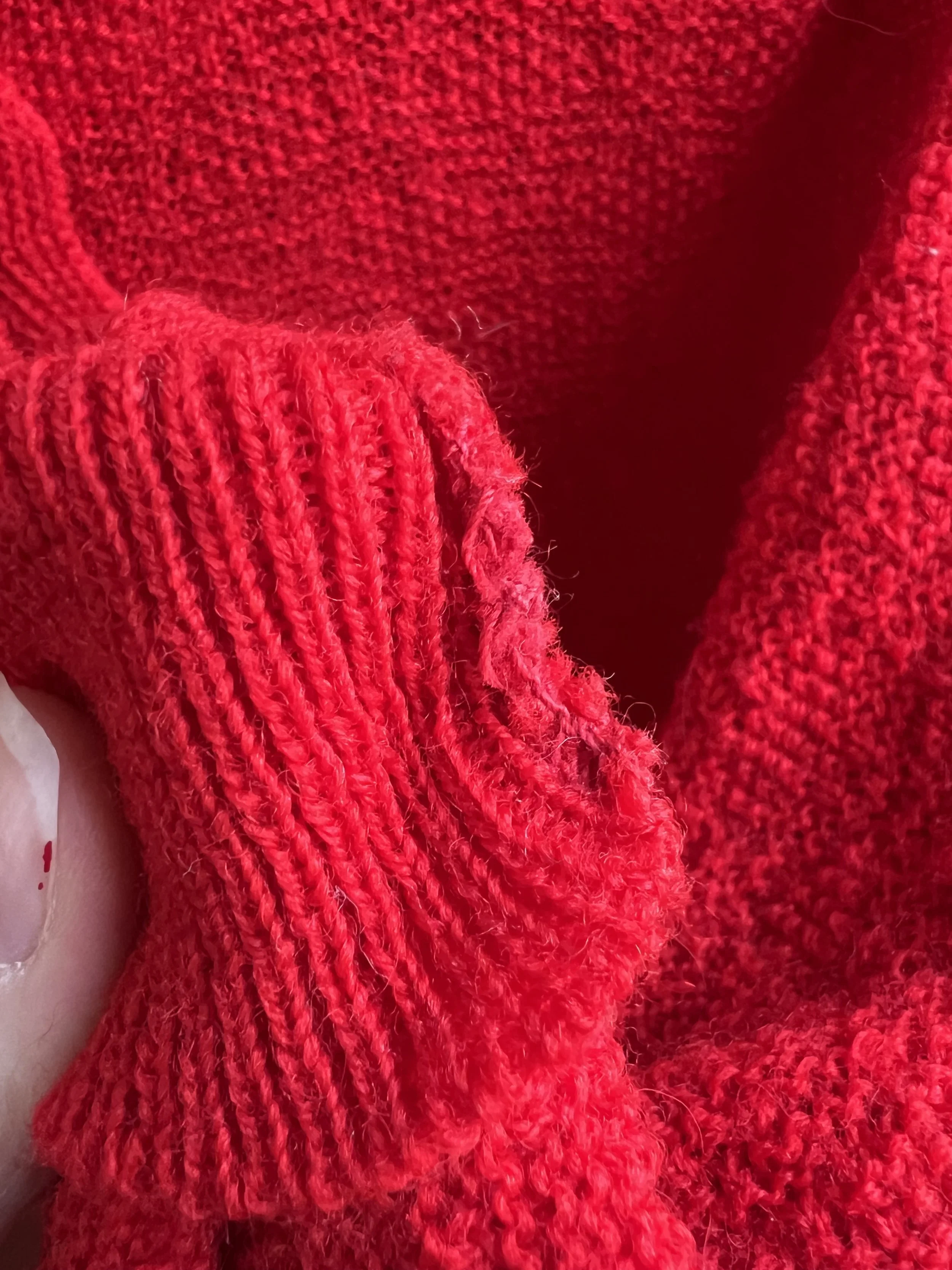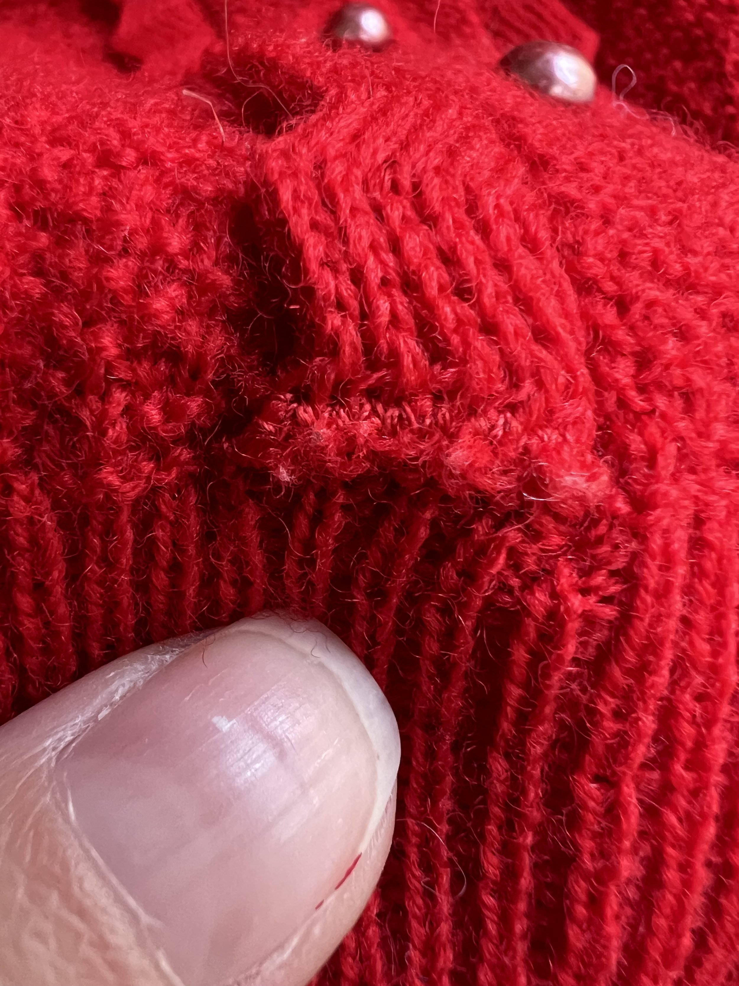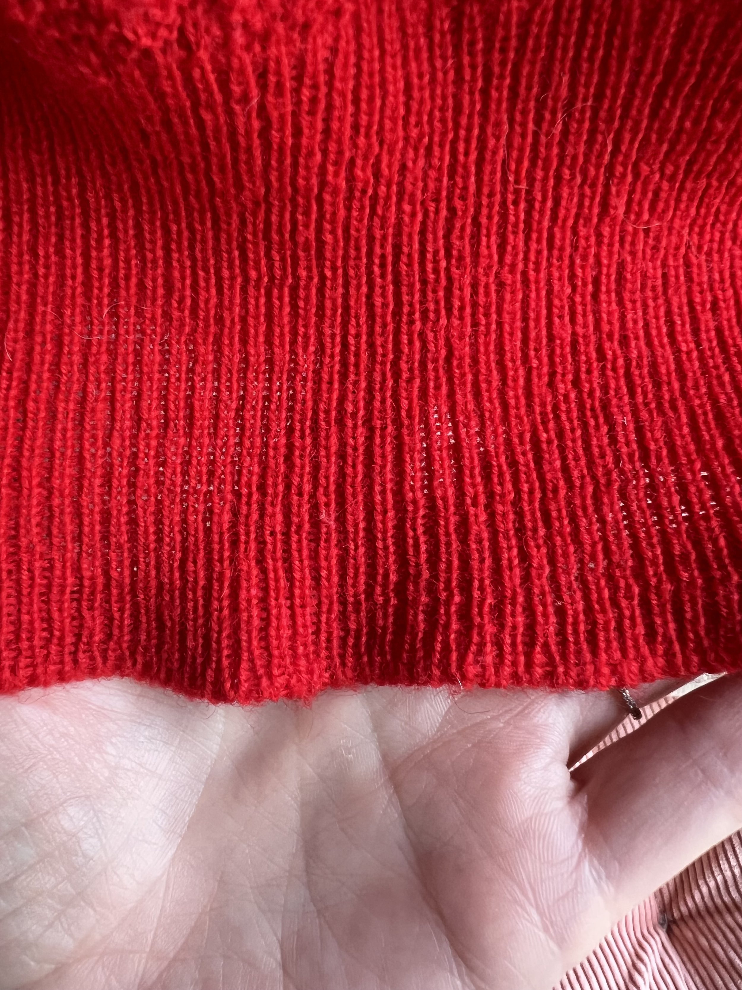 Good to Fair vintage condition - Present beautifully but there is some wear and discoloration to the piece. The discoloration and spotting is found throughout both pieces which when looked at overall and from afar, I personally don’t think its too terrible, but when examined closely it is present. While there is some lighter spots noted on the sweater and skirt, most of the discoloration to my eyes is darker spots found throughout both pieces, but to my eye the worst of this is noted on the back of the sweater. None of this came out with repeated cleaning. The discoloration was particularly difficult to capture with camera (I had to take photos at weird angels and in weird lighting to be able to demonstrate what I mean), but it is present and why I am leaning it more towards “fair”. There is also some overall wear to the knit pieces, like some slight pilling throughout as well as some loose threads. This piece was over dyed - you can tell this because the string is a different color, especially the string used to make past mends, which are also noted in the photos. Most of this is taken from the underside so most of these mends really are not too visible from the exterior of the pieces. The over dye caused the mohair edge of the collar to turn grey. Some wear to buttons. Belt loop, but no belt. I do feel like this is still a beautiful piece and is still wearable.