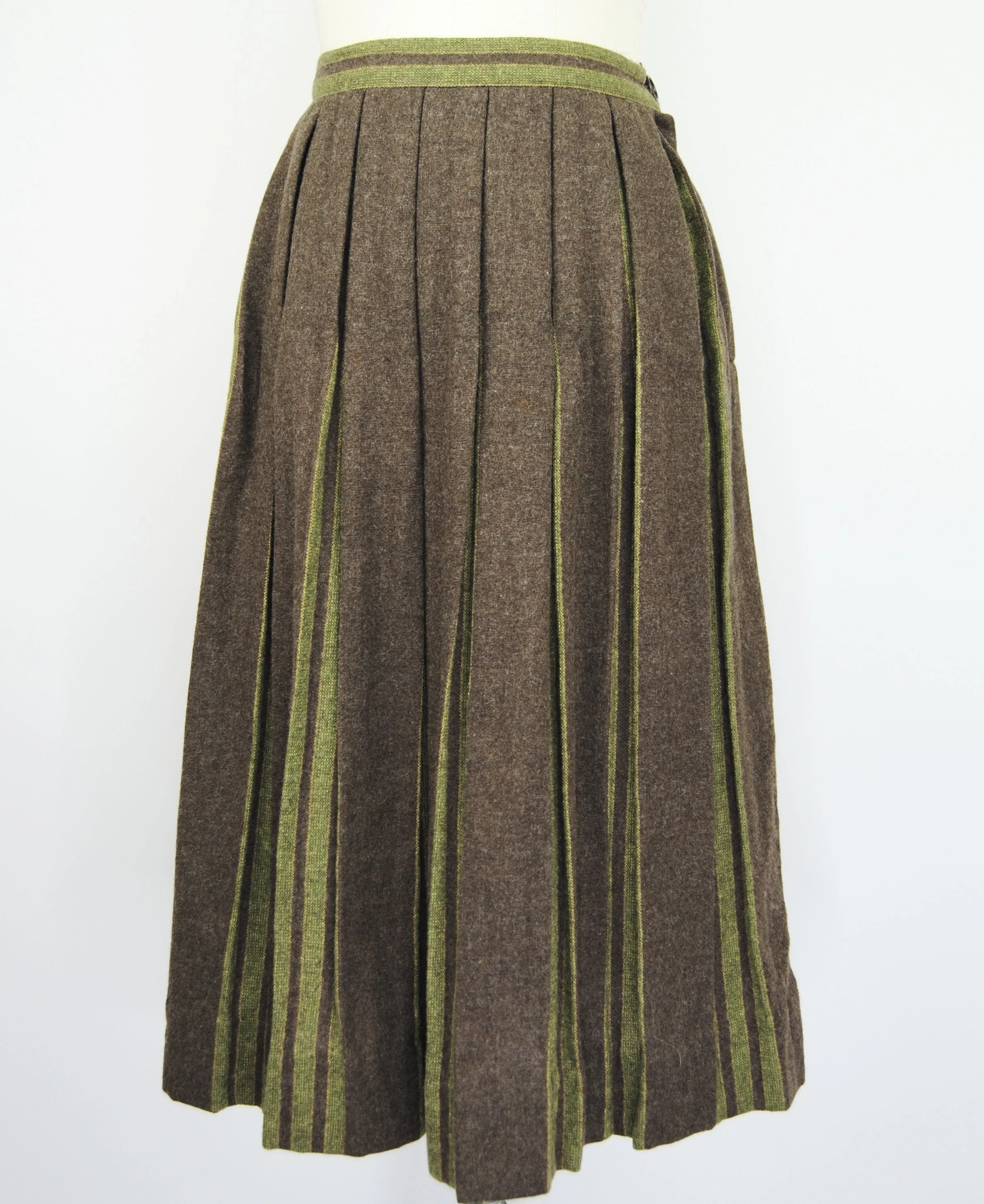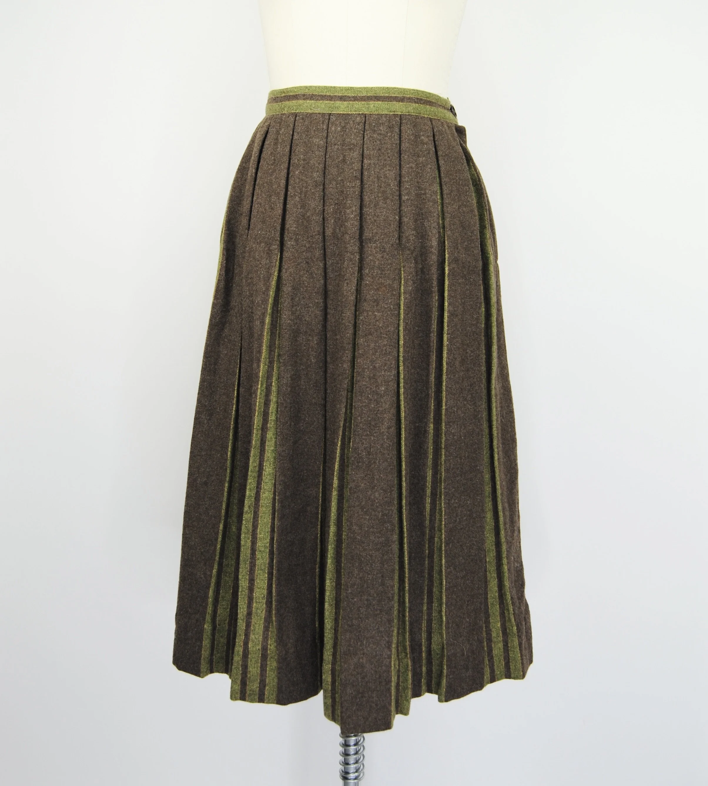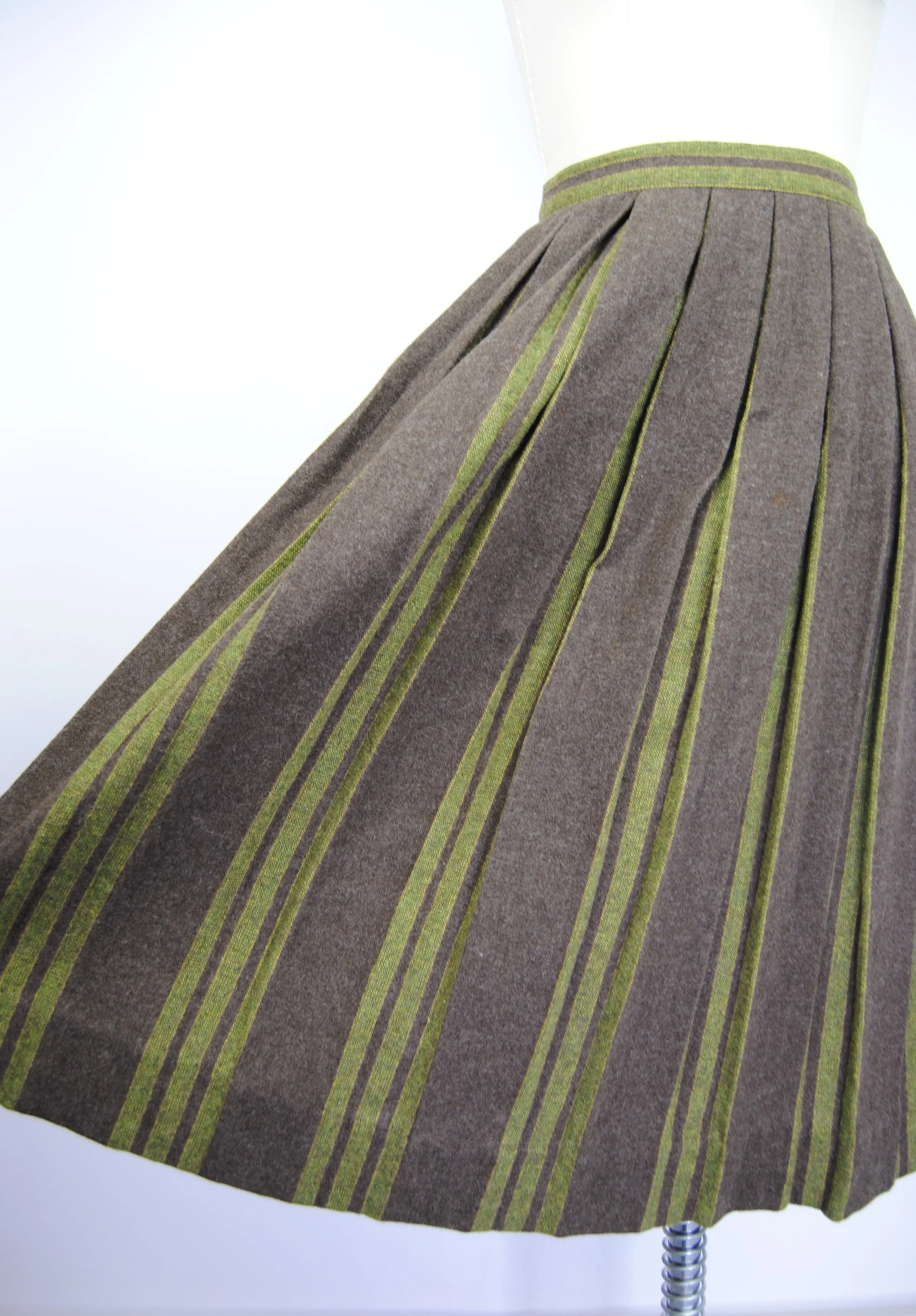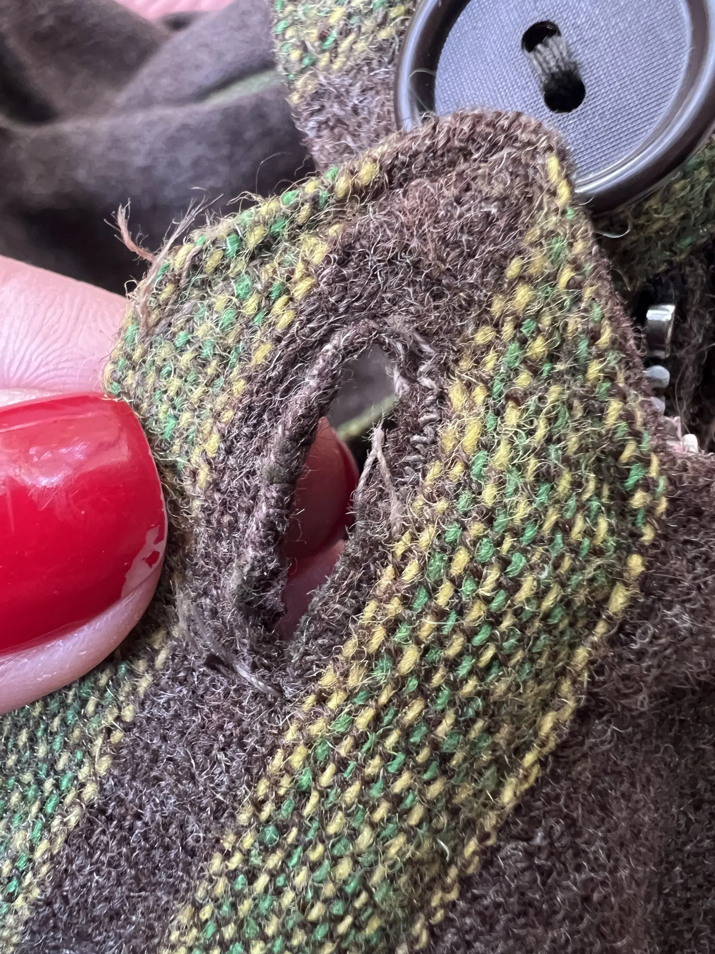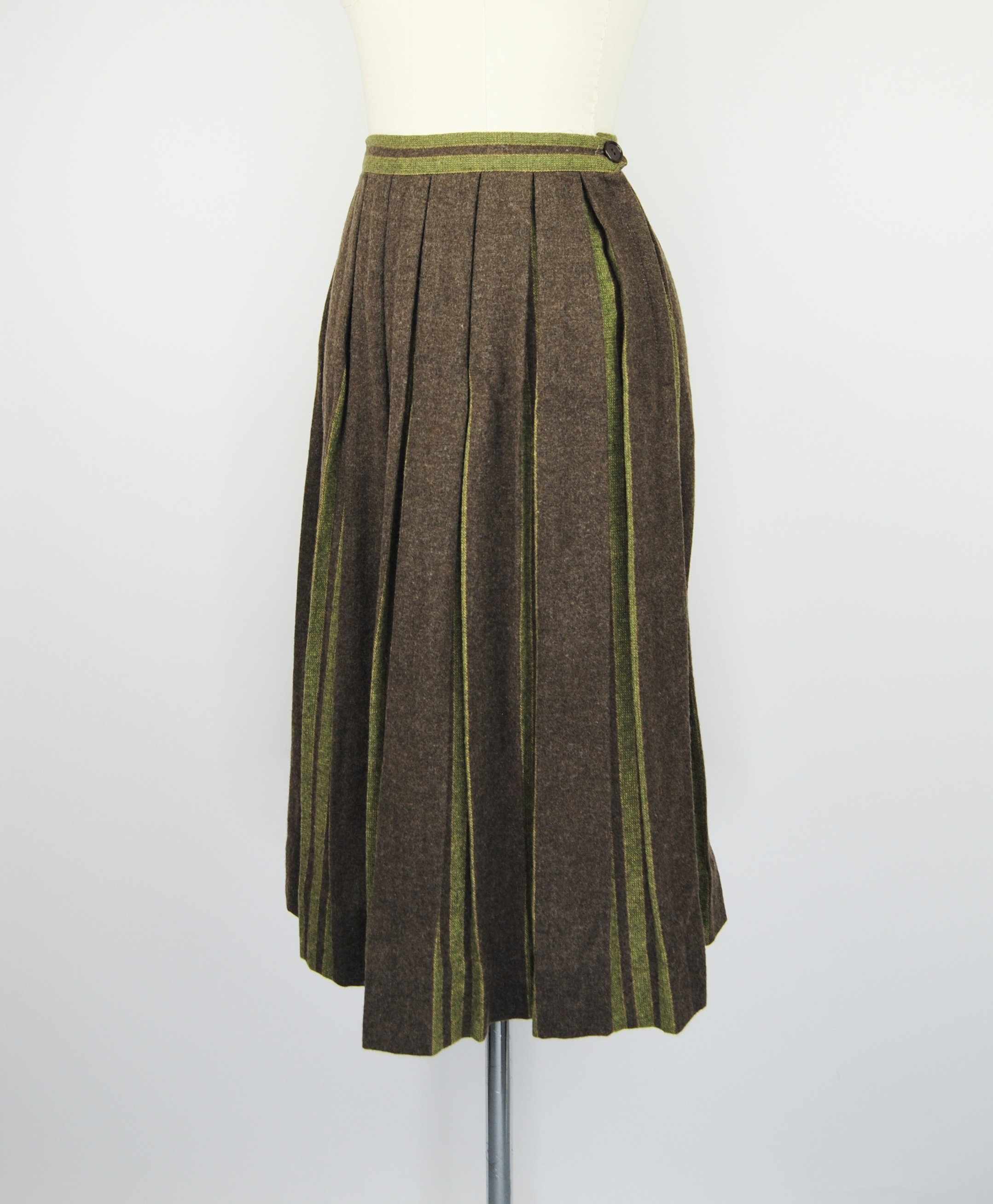 Good Vintage Condition- Some overall expected wear to piece. A few areas of very small pulls or pilling/ fuzzing/ faint spots. Some wear to the interior lining of the piece including some slight discoloration and small holes. Marks to tag. Very small pin hole found at the back of the neck on the green trim of the piece. Slight discoloration to that same piping right at the edge. Not obvious though unless looking very close.