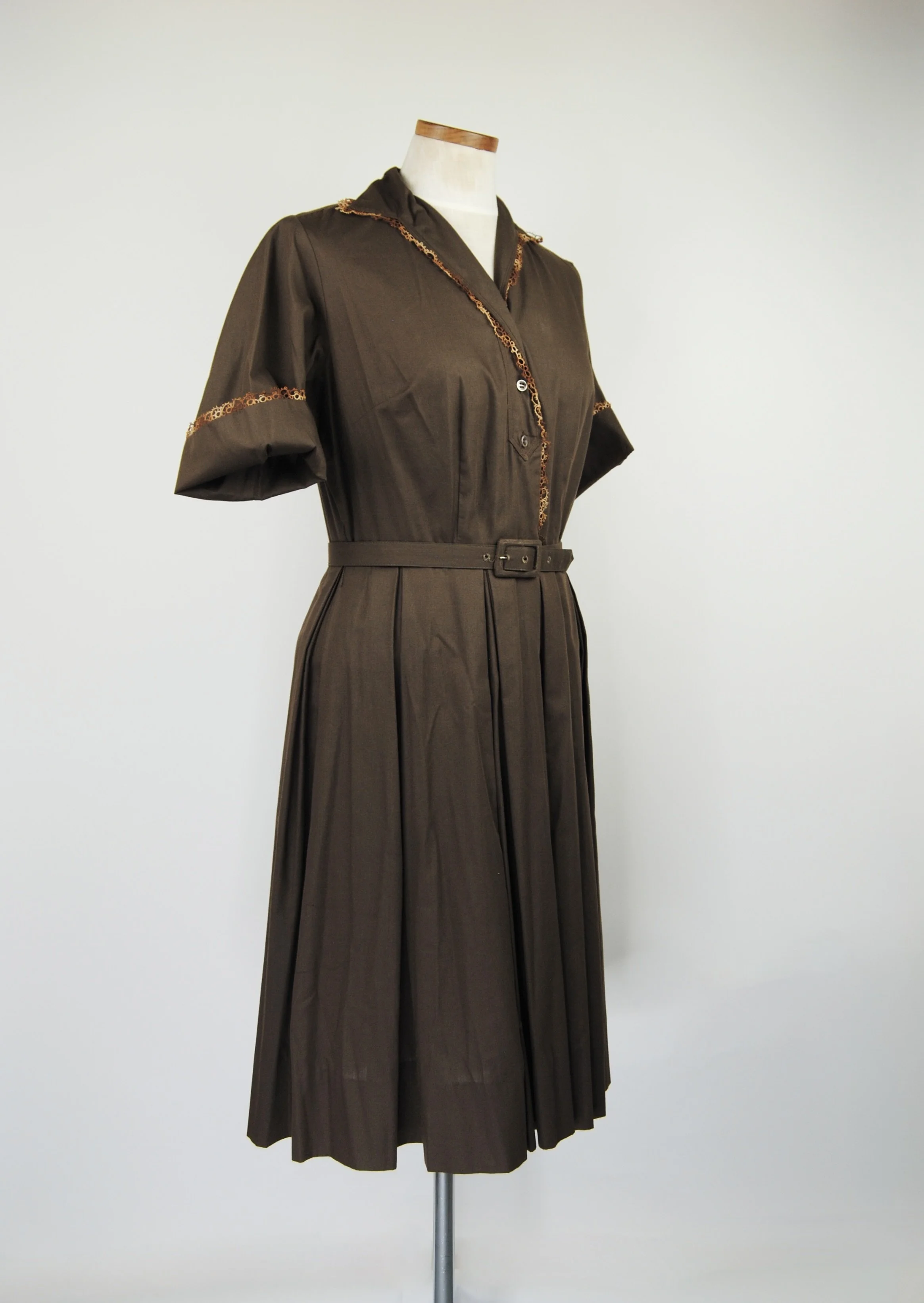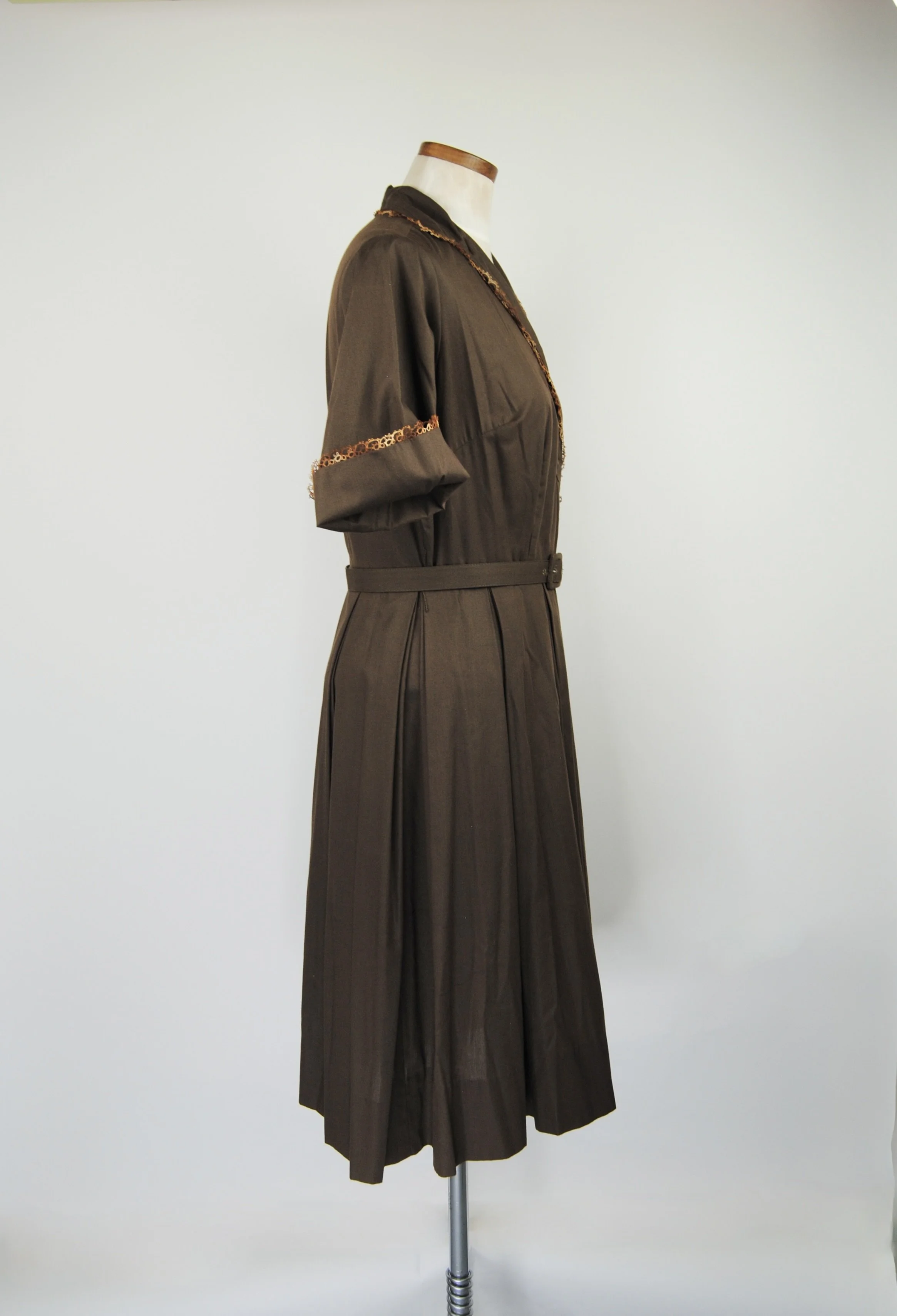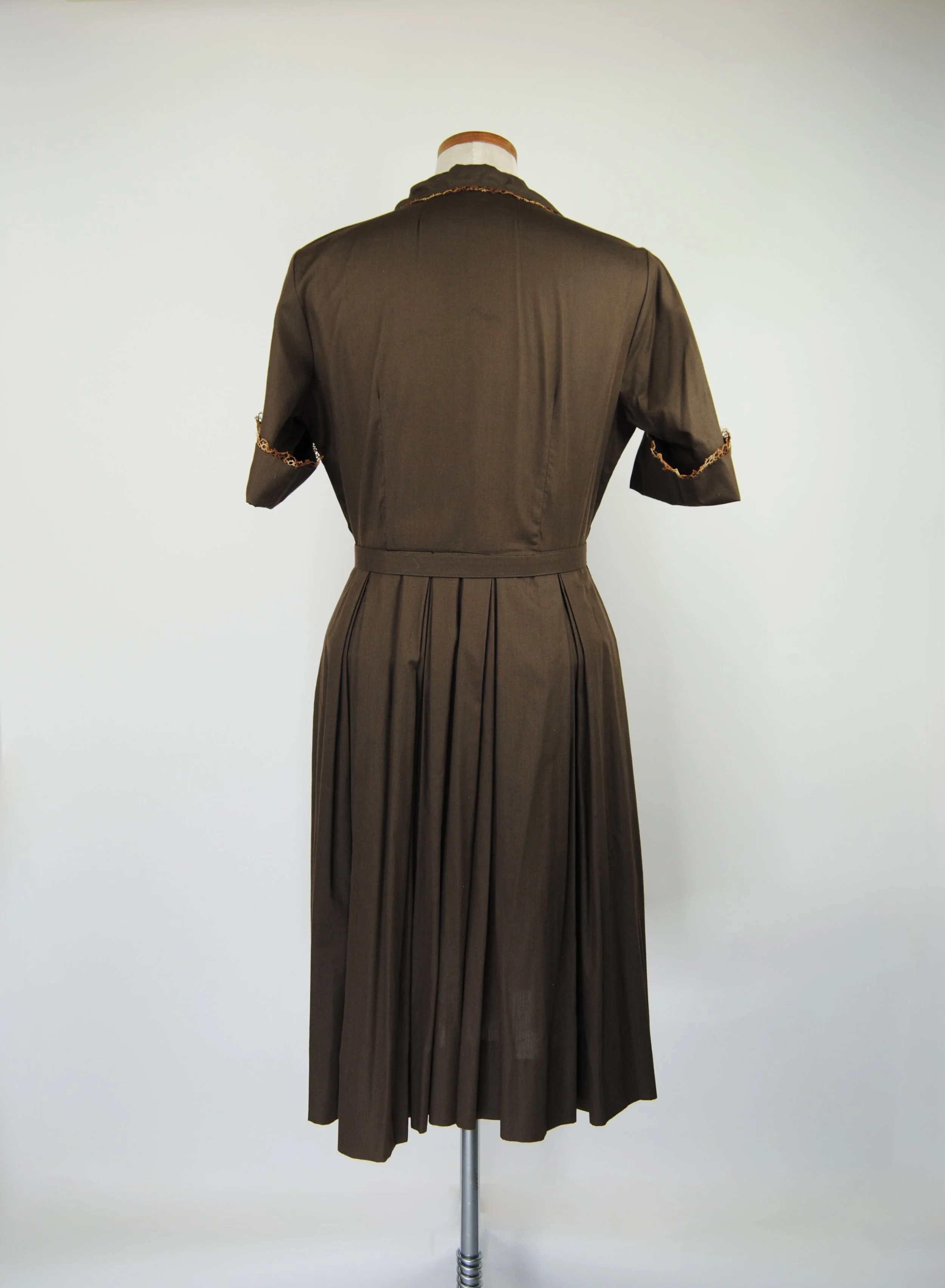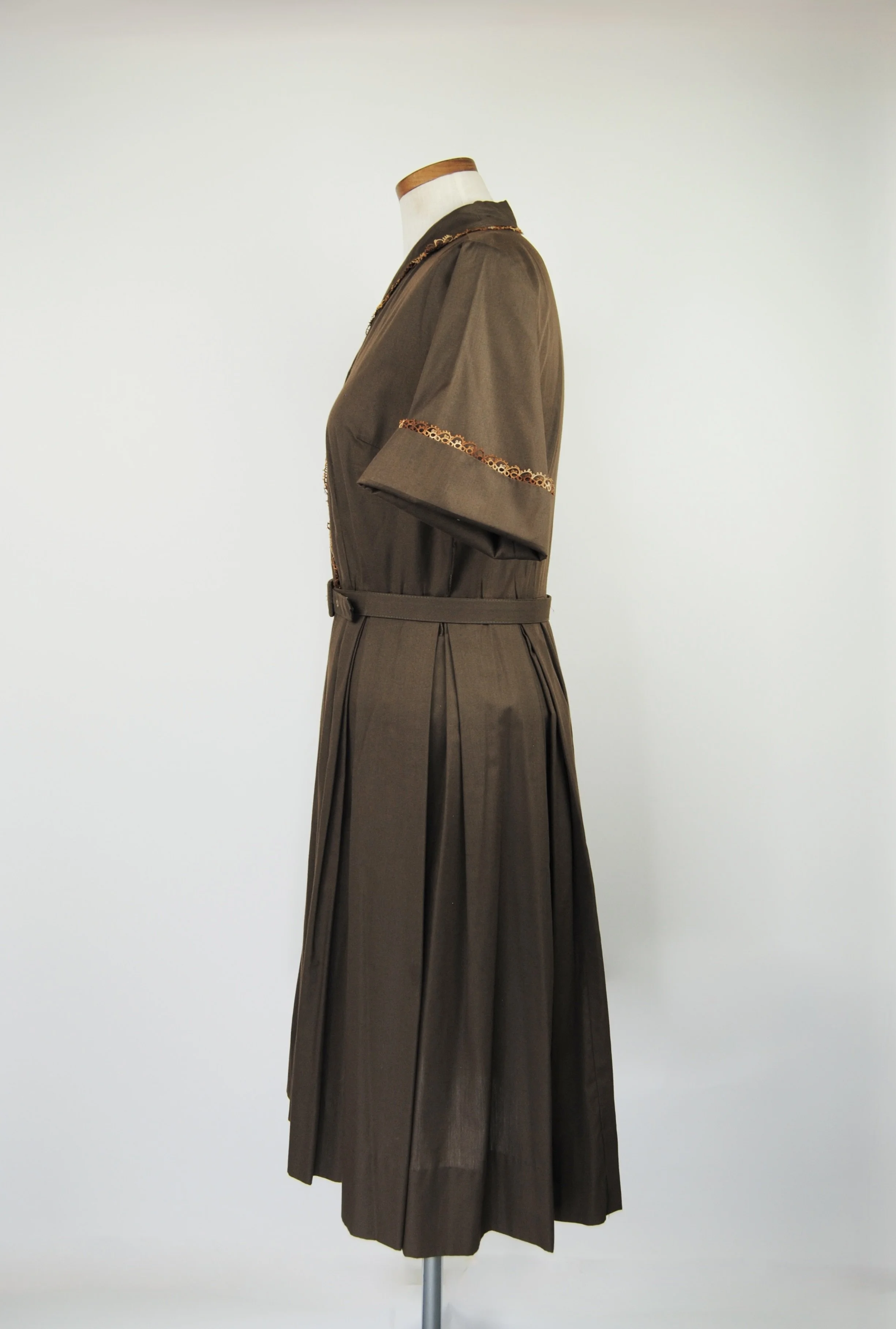 1970s Vintage Lilli Diamond Dark Brown Sequined Bodice Formal Evening Gown or Dress - Md