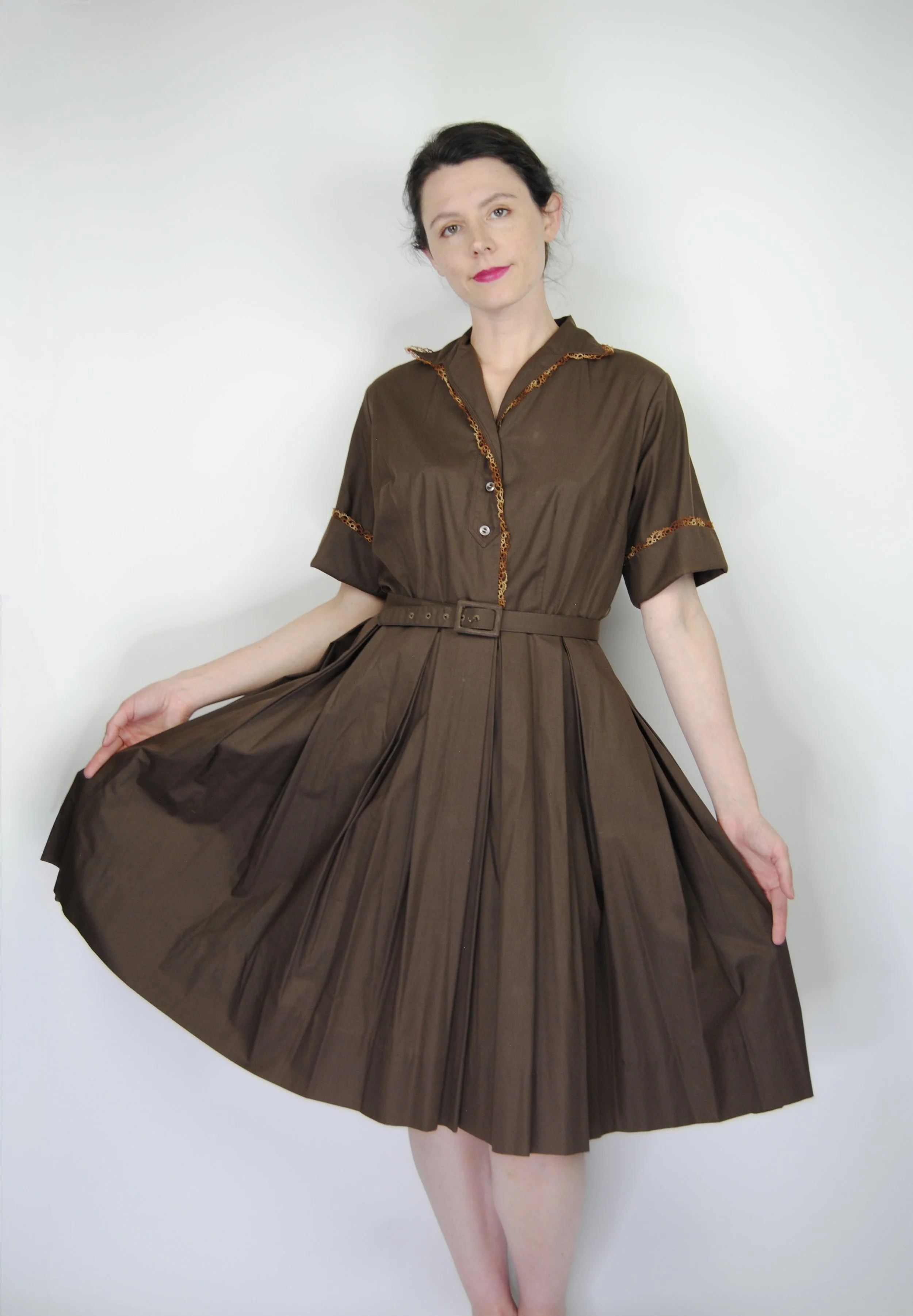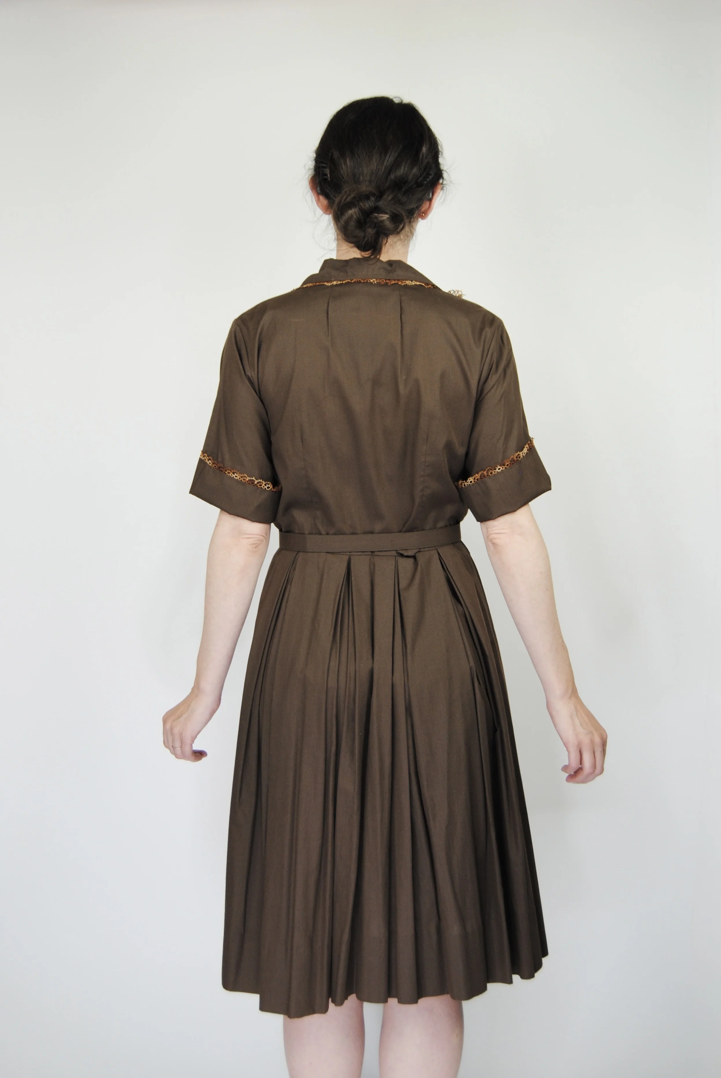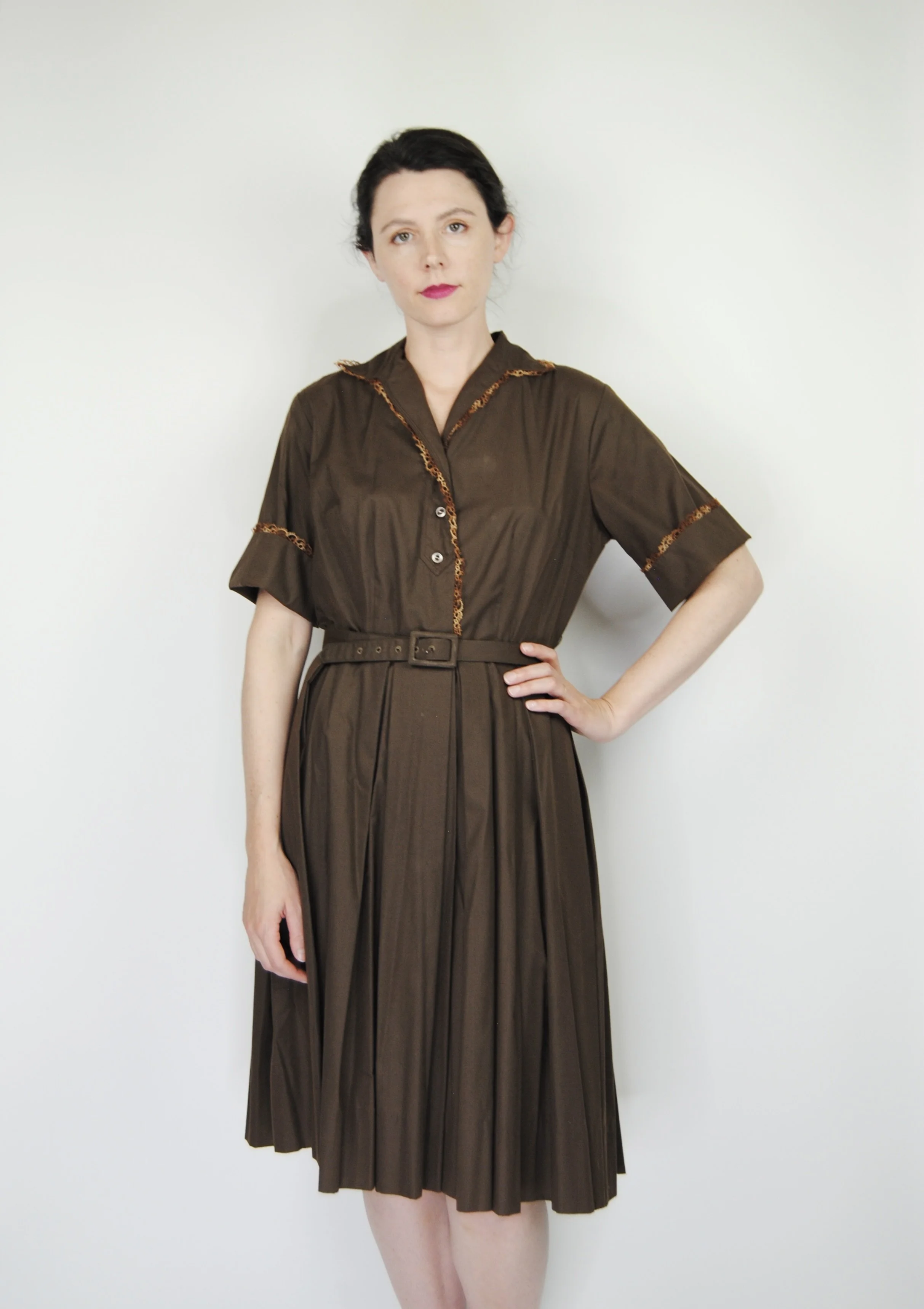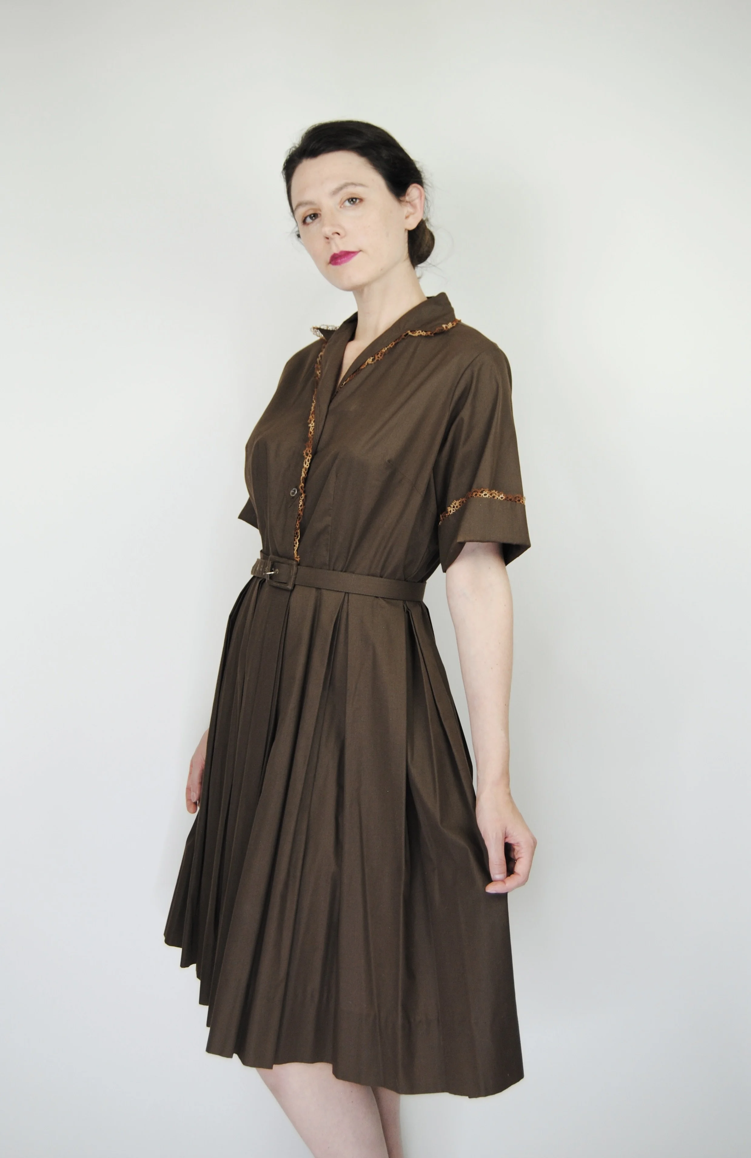 1970s Vintage Lilli Diamond Dark Brown Sequined Bodice Formal Evening Gown or Dress - Md