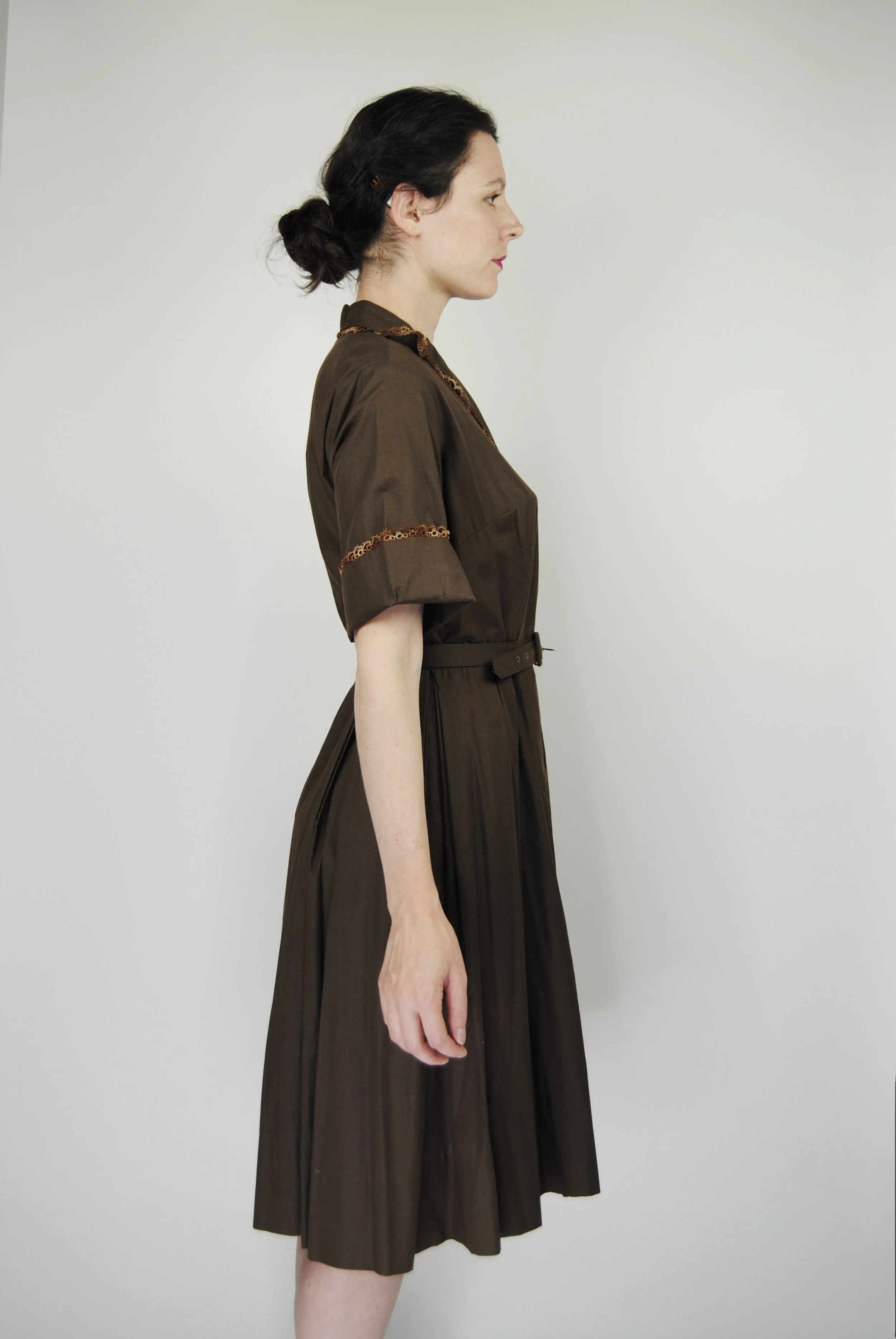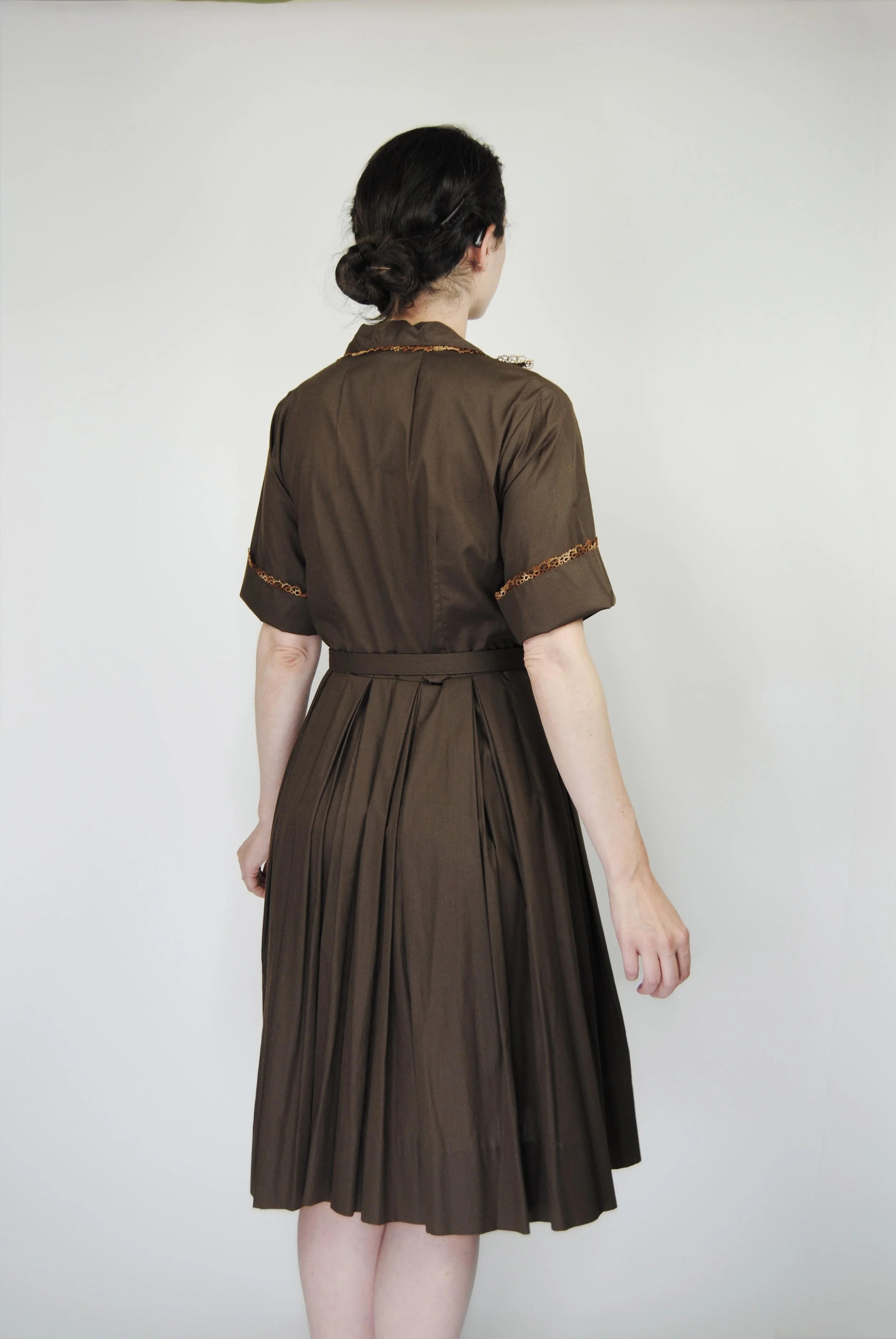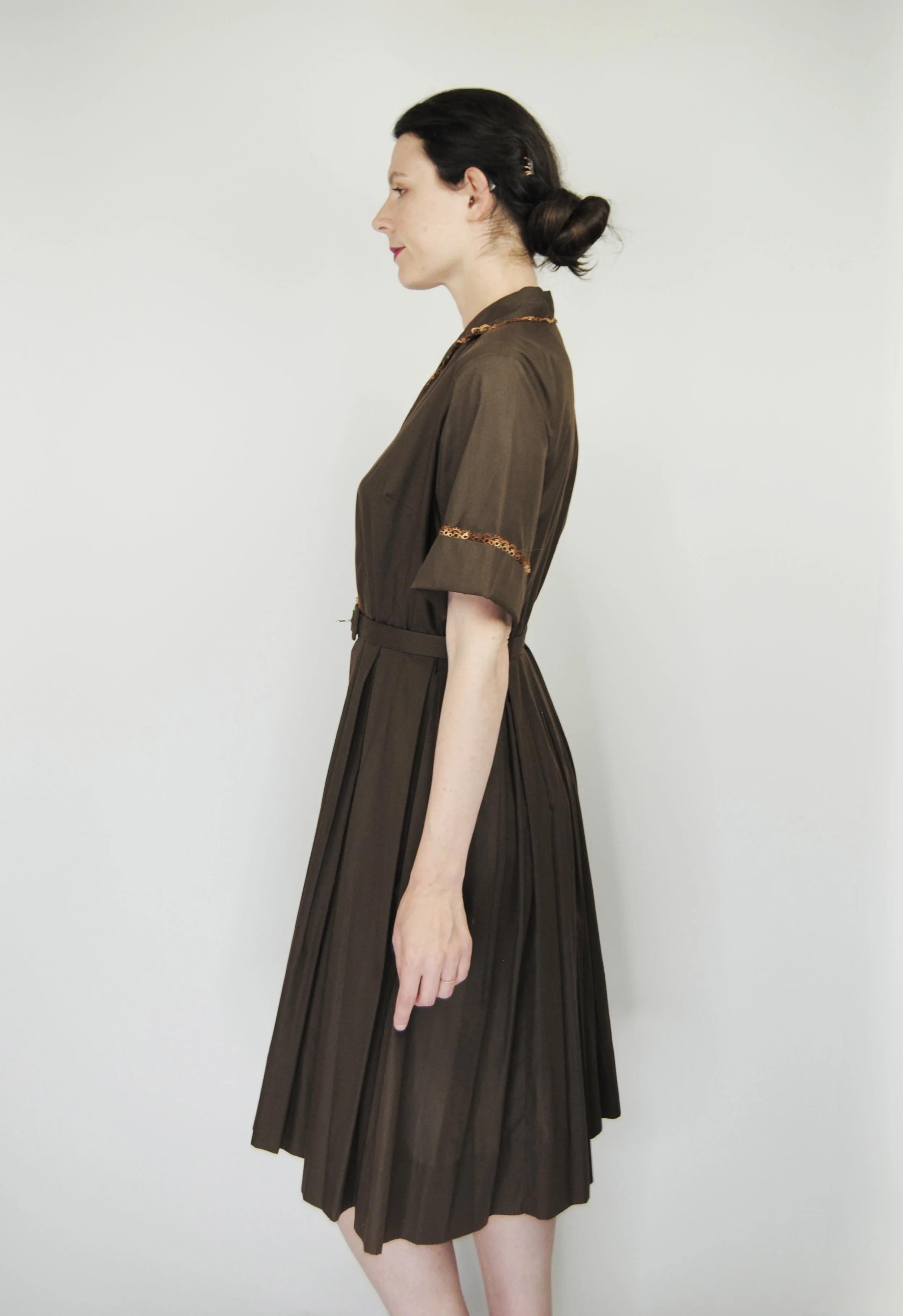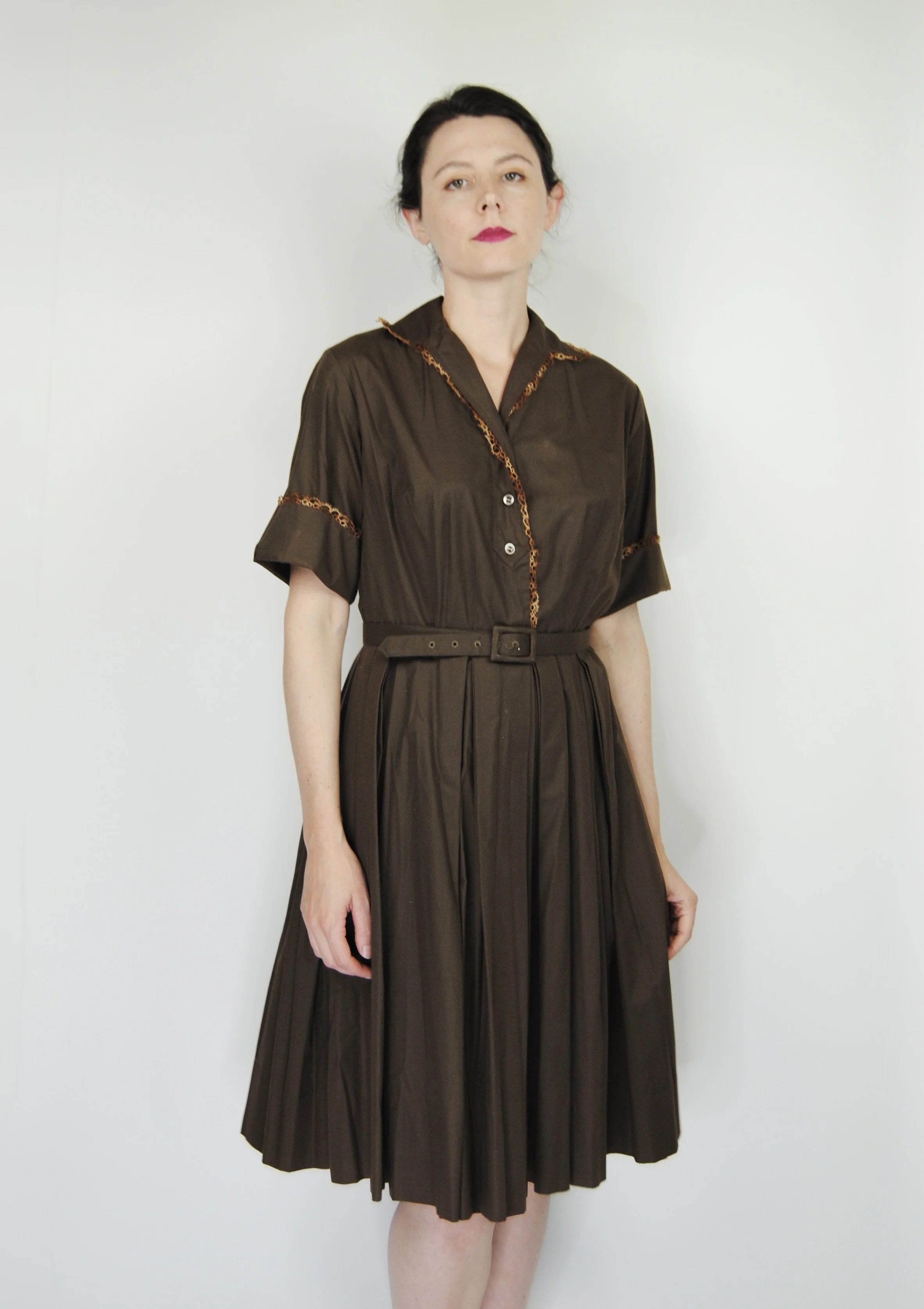 1970s Vintage Lilli Diamond Dark Brown Sequined Bodice Formal Evening Gown or Dress - Md