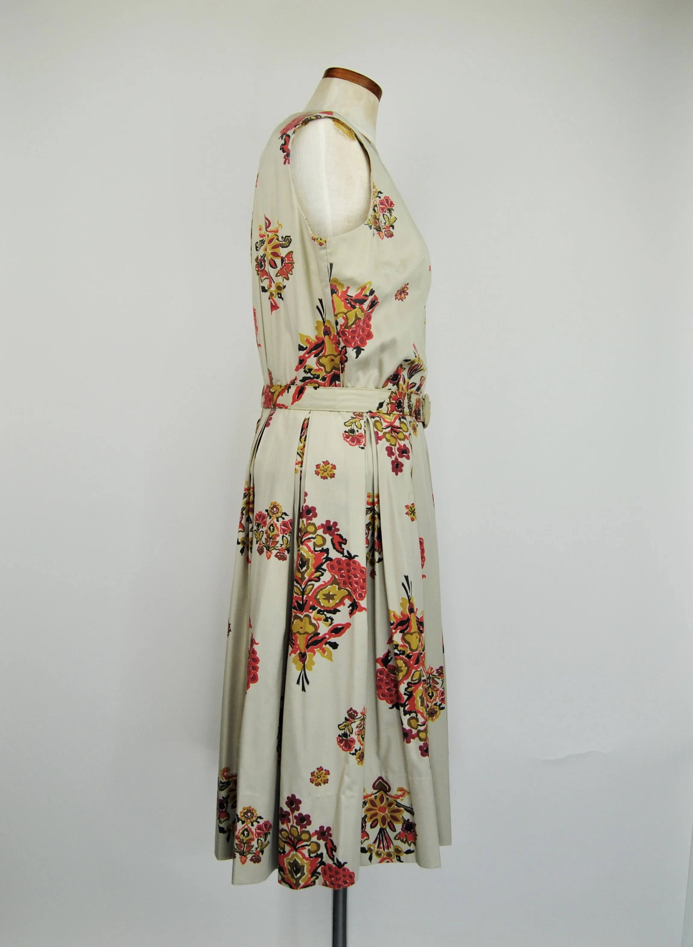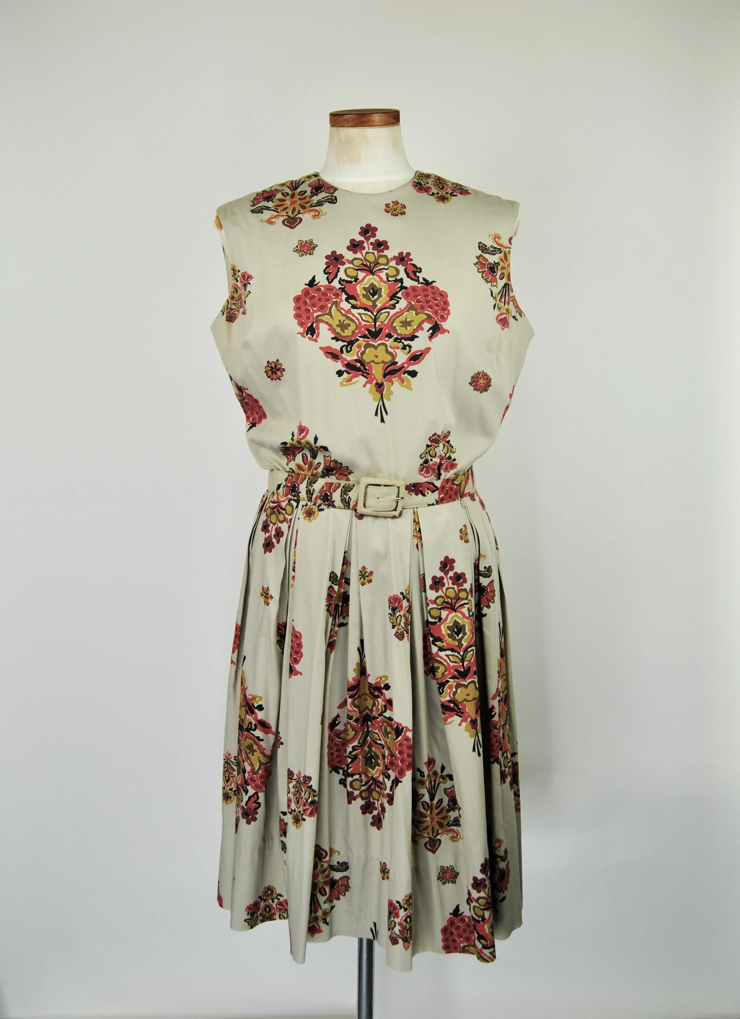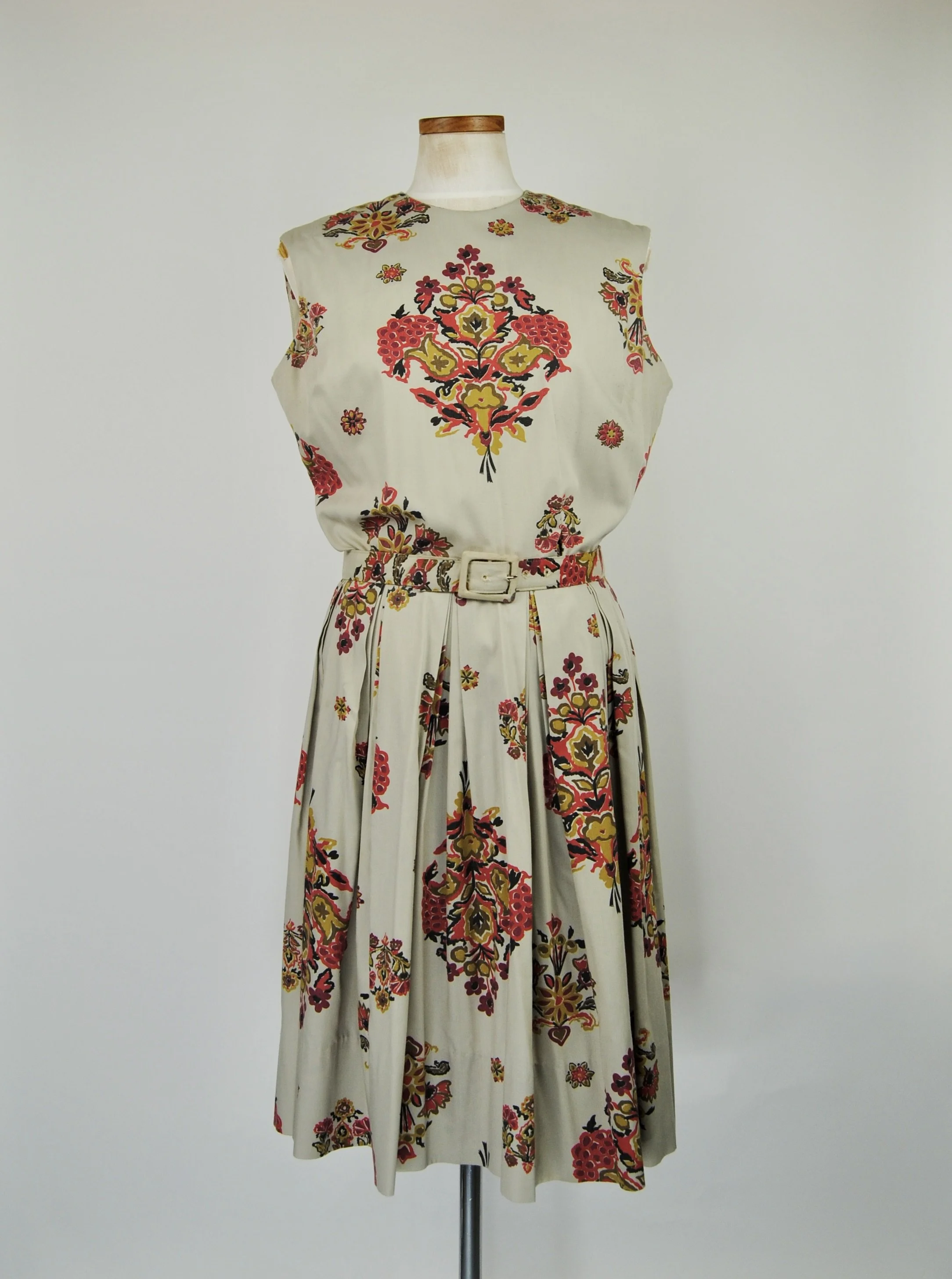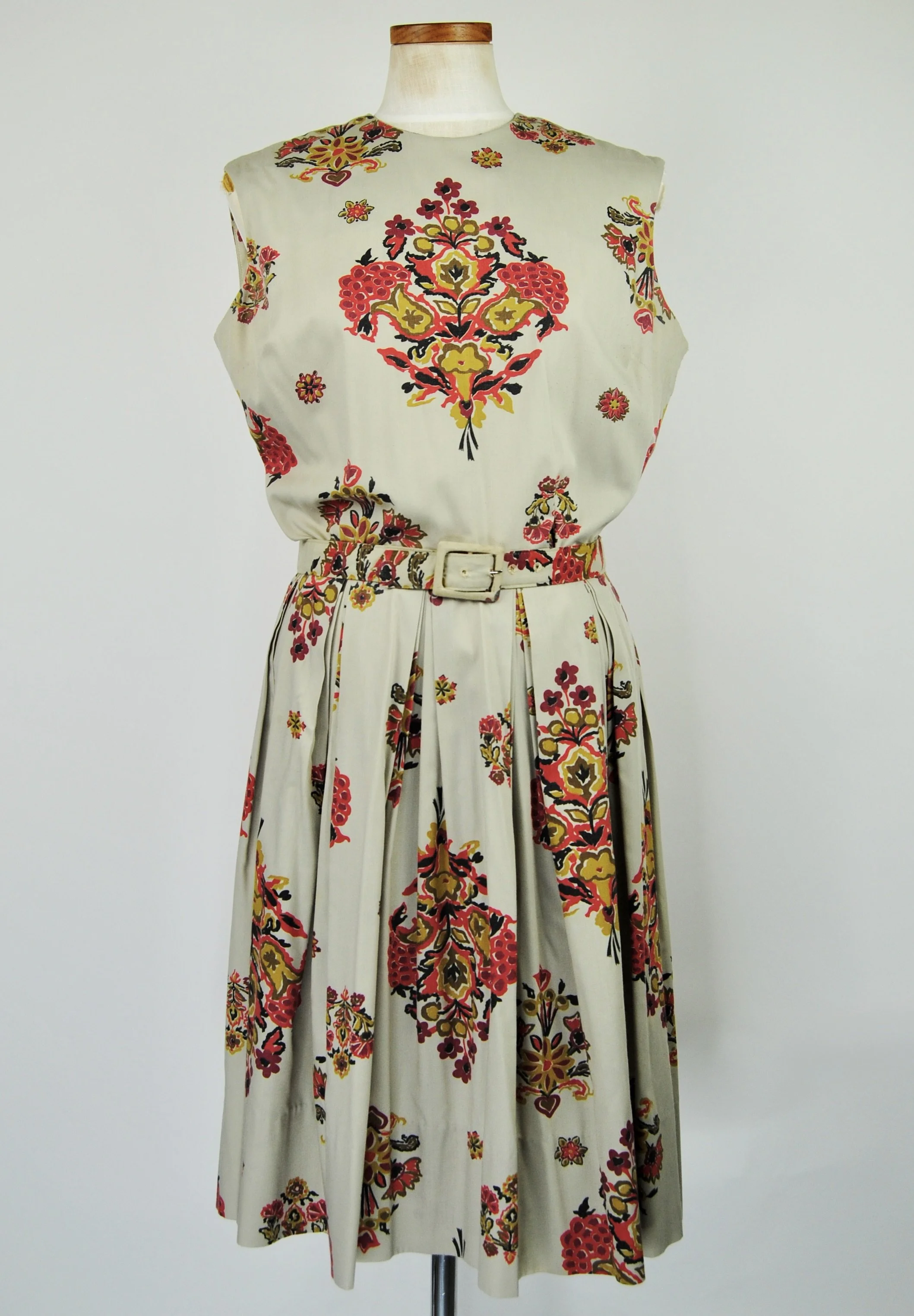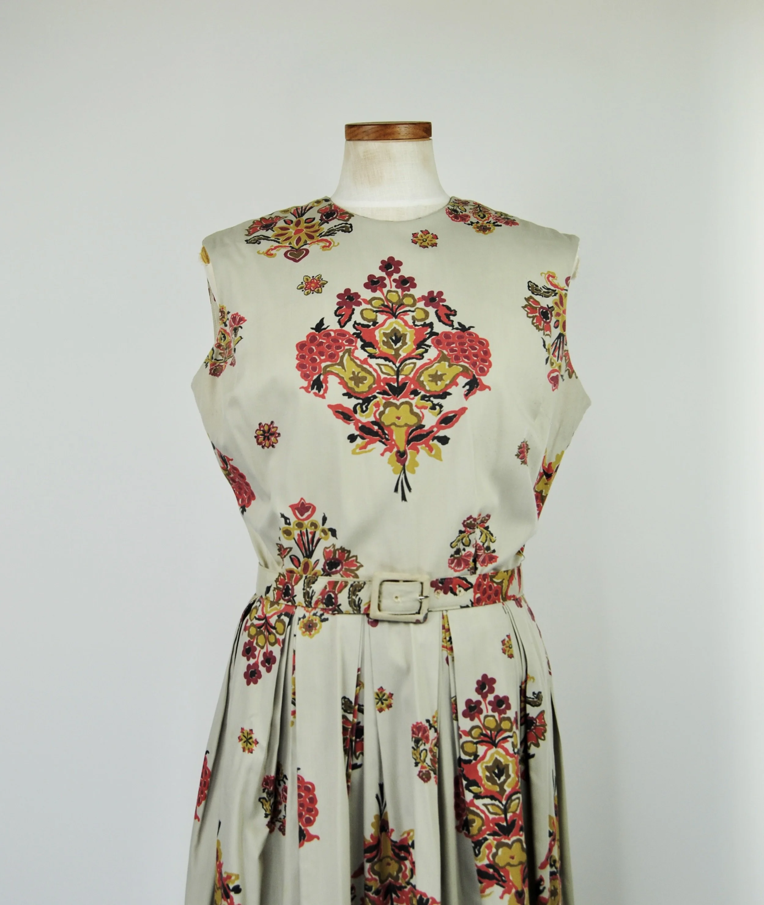 Good vintage condition -Overall wear to the garment. A few areas of pulling to the knit underneath the sequins. There are some areas where a few sequins appear to be missing, but it does not seem obvious or detract from afar to my eye. Some marks and wear to some sequins too. The sequins can make it hard to zip up and find the hook clasps on the belt- but everything does work and fasten as intended! There are numerous marks on the skirt that did not come out with cleaning and near the hem a few pinholes/pulls found. Some discoloration to the interior at the underarms also noted. Some wear to belt too. Please note that after shipping and being folded, this dress will likely needed a good steam for the skirt portion as it likes to wrinkle! Priced for marks.