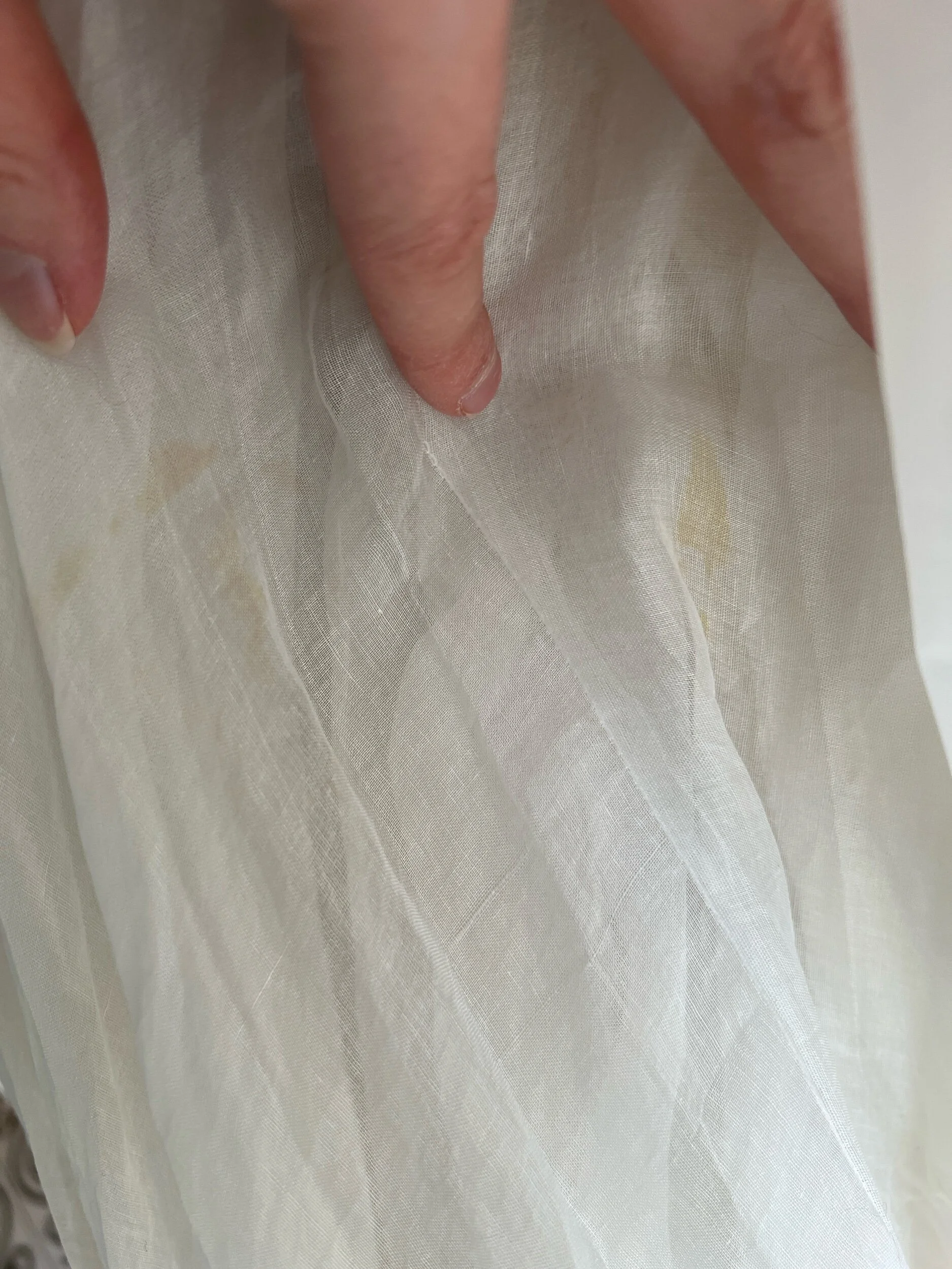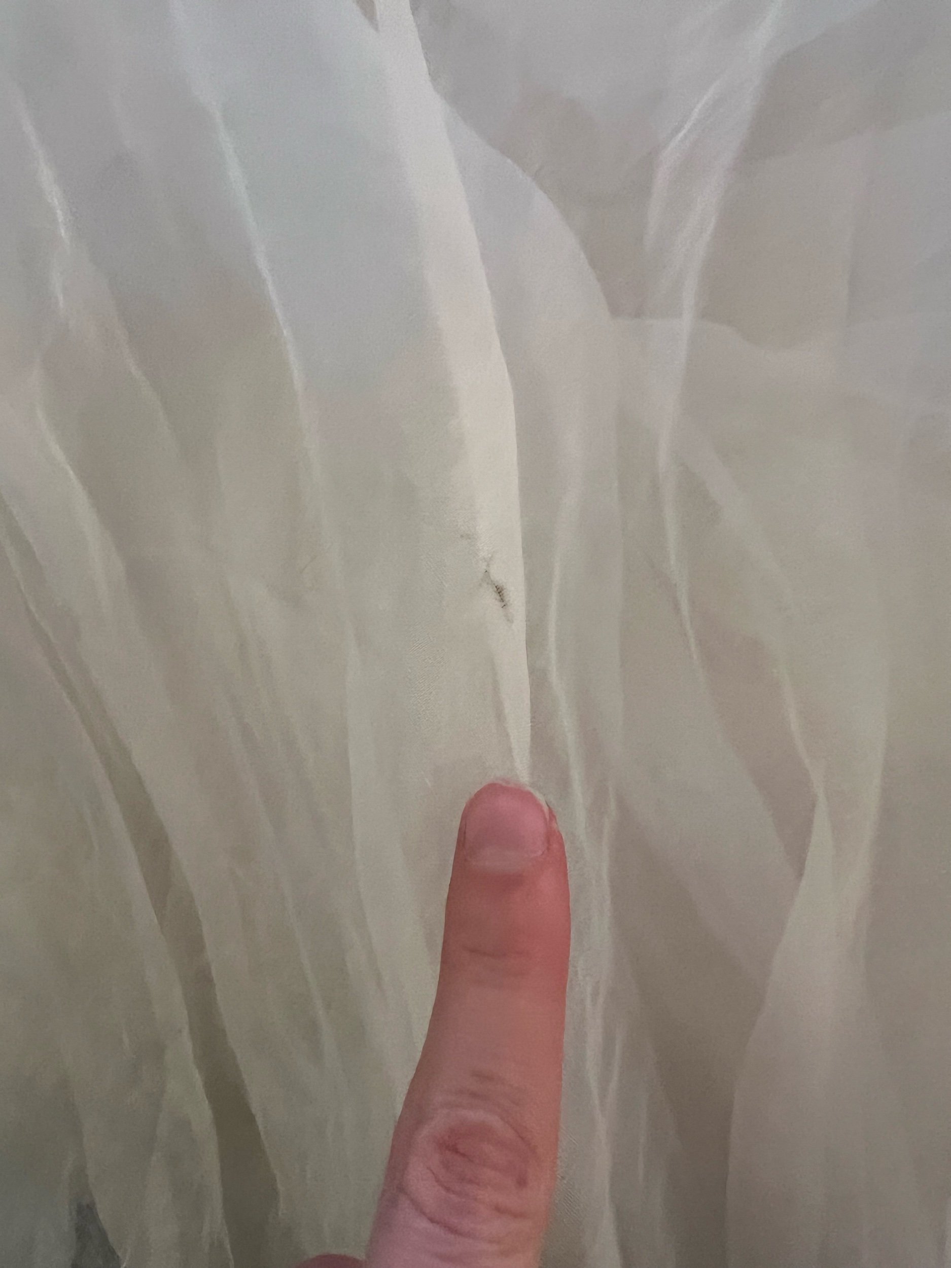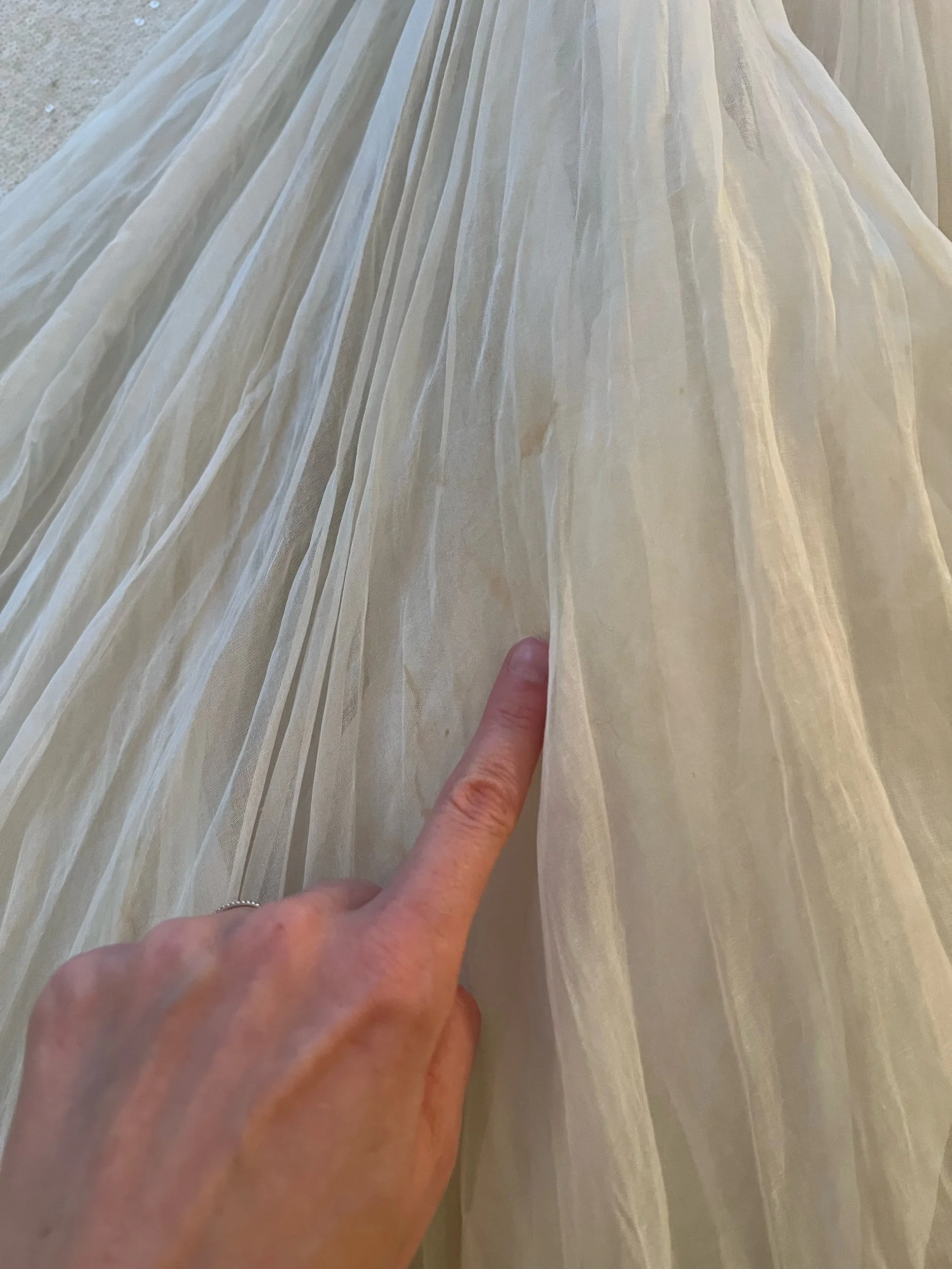 Good to Fair vintage condition - Overall wear to the piece but presents beautifully and still seams very wearable. There is some overall greying/yellowing to the piece. While I did delicately wash the gown a number of times, there are still a number of marks and stains remaining throughout the piece. With all the skirt fabric though, to my eye at least I didn’t think they were too terribly noticeable overall. Further faint markings on the hem of the inner skirts were also found. The rhinestones do not appear to be missing (though some are cloudy), but of course that could be overlooked on my part, so if any are gone or damaged it’s not obvious. Lace appears to be in good shape overall with only a few loose threads and minor wear and just some of the edges bending down around the bodice (these could be stiffened). There is some minor rip to the inner tulle underneath the lace right by the zipper. Wear to inner seam allotments. Please see photos.